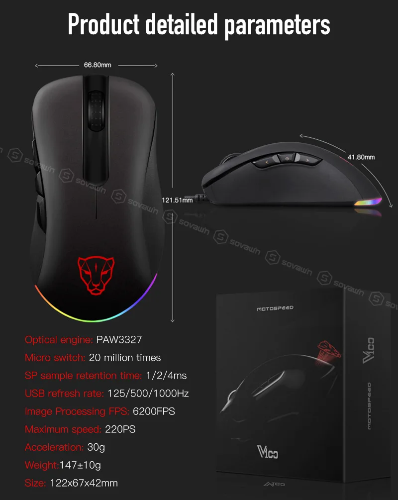 Motospeed V100 светодиодная игровая проводная мышь