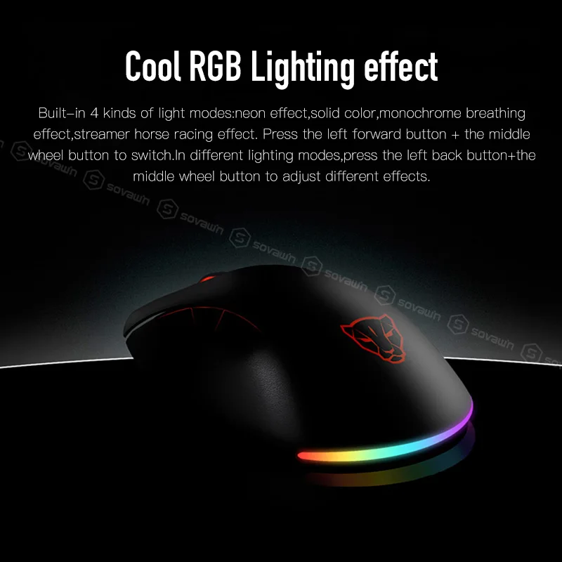 Отрегулируйте световой эффект, нажав левую кнопку назад и кнопку колеса в различных режимах освещения.