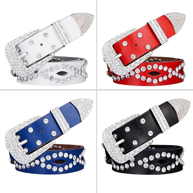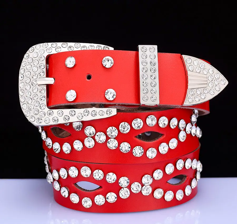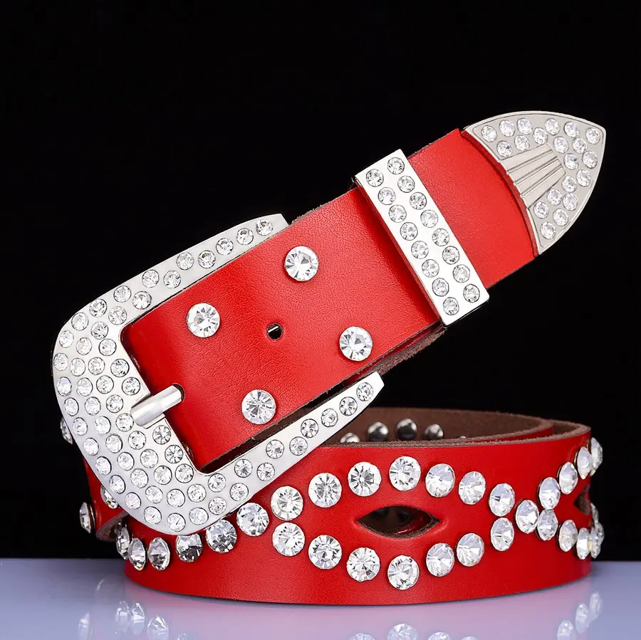 Belt StyleRhinestone women belts,Genuine leather belts for women