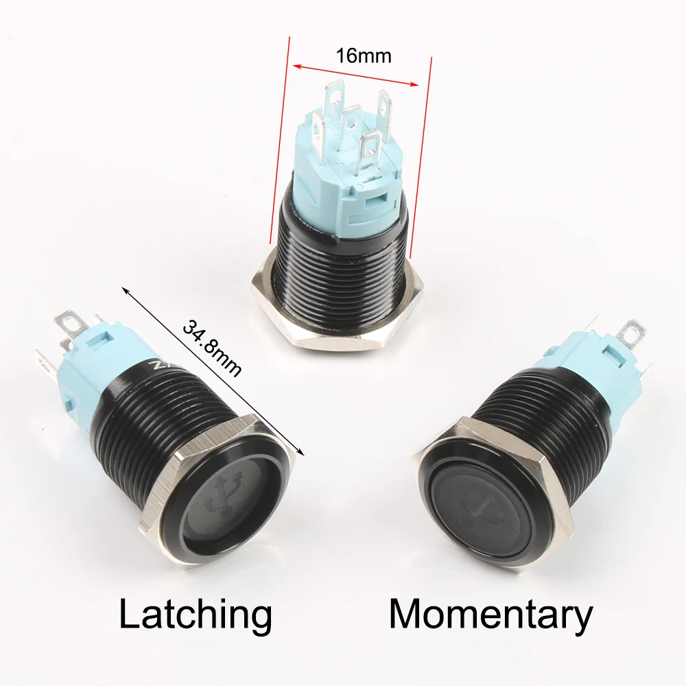 Фиксируемый кнопочный переключатель для автомобильного динамика, 16 мм, из оксида алюминияметалла, с фиксацией логотипа