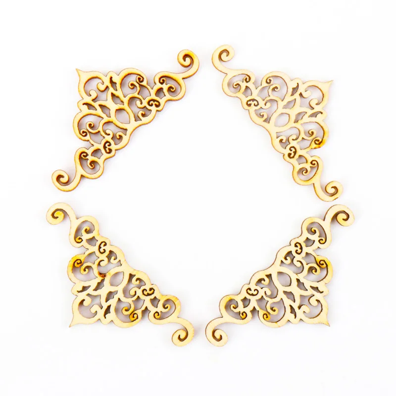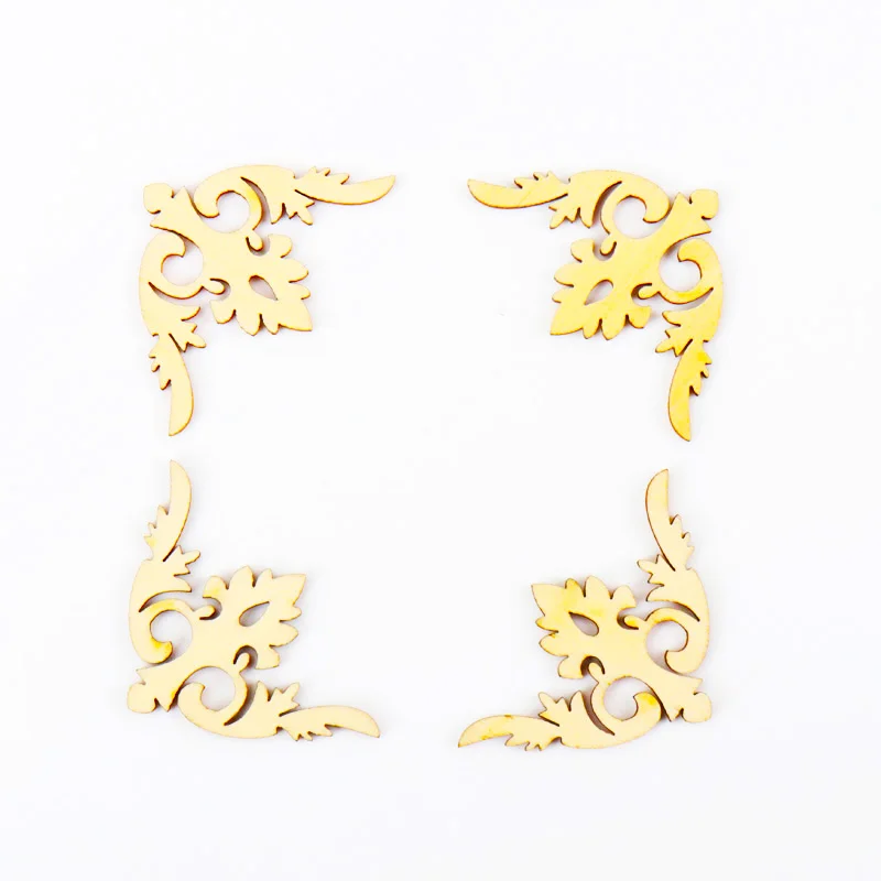 Цветок из натурального дерева, 54 мм, 4 шт., полоски для рамки