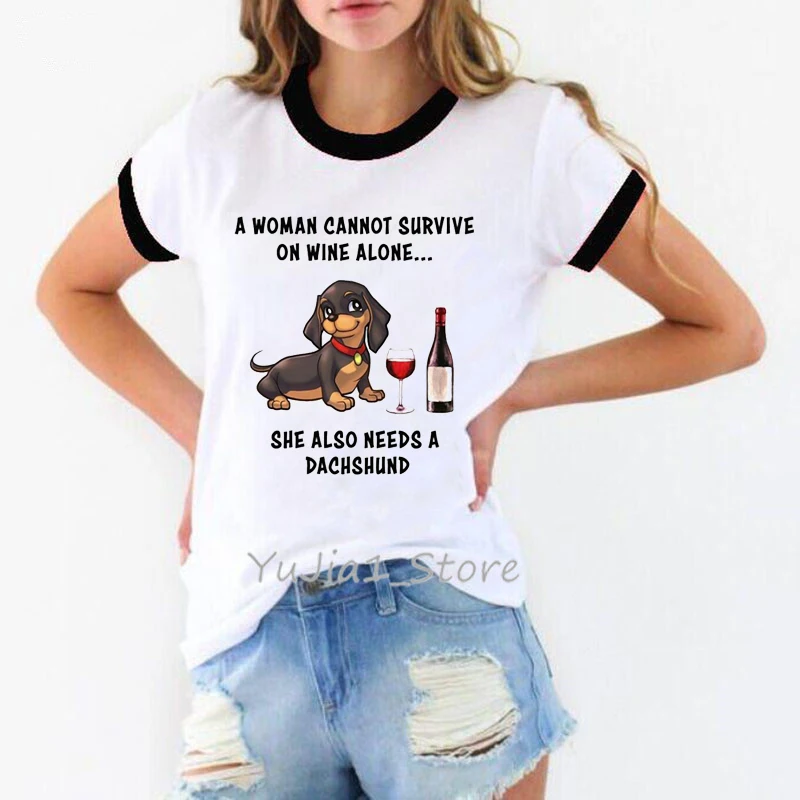 Футболка женская с принтом такса, винтажный Графический Топ с надпи...