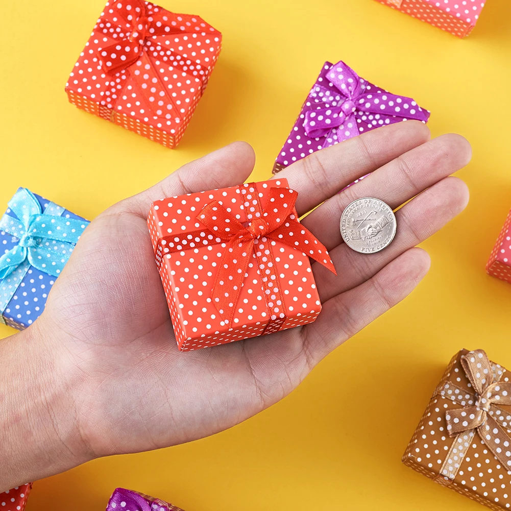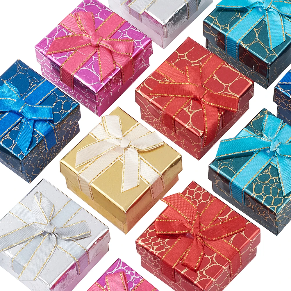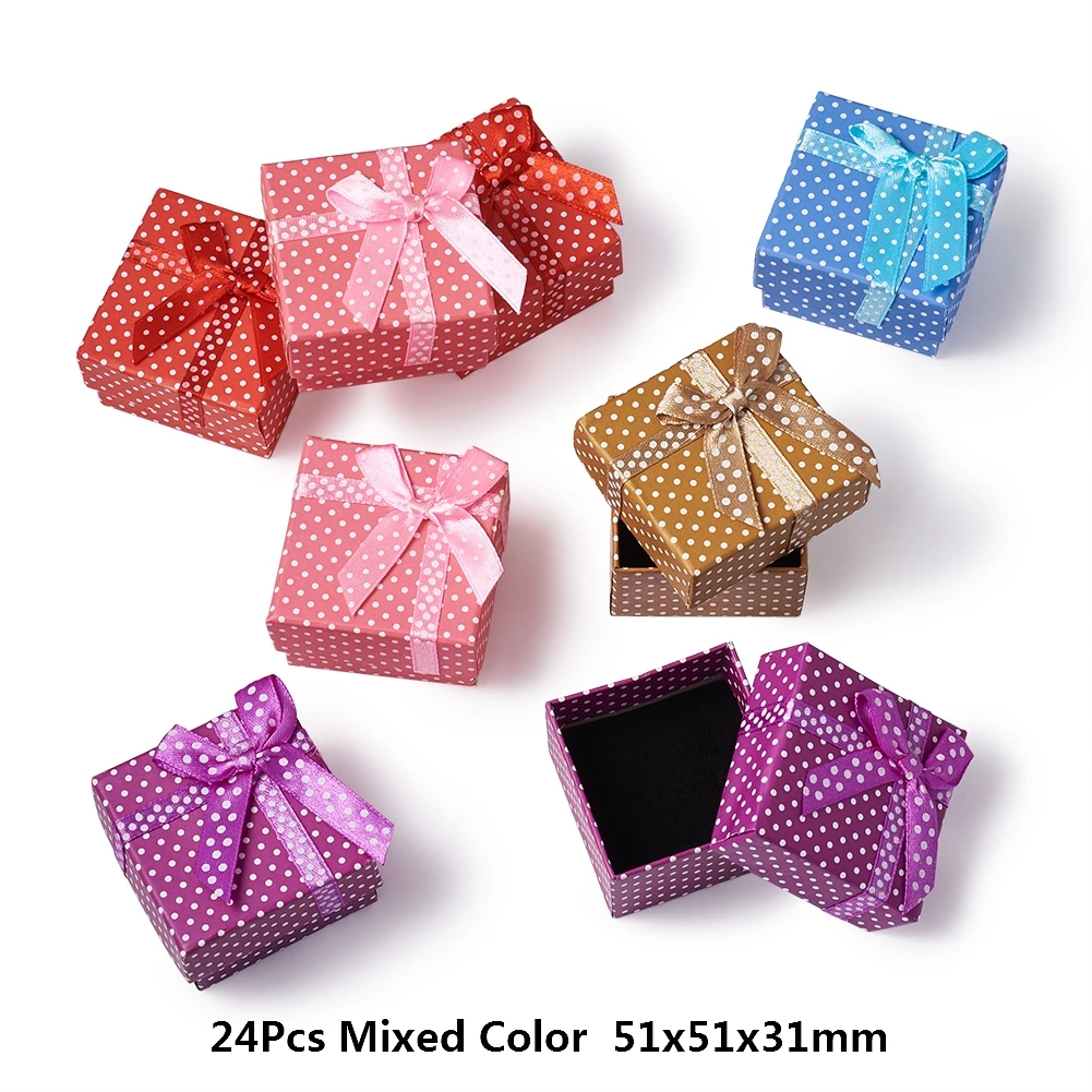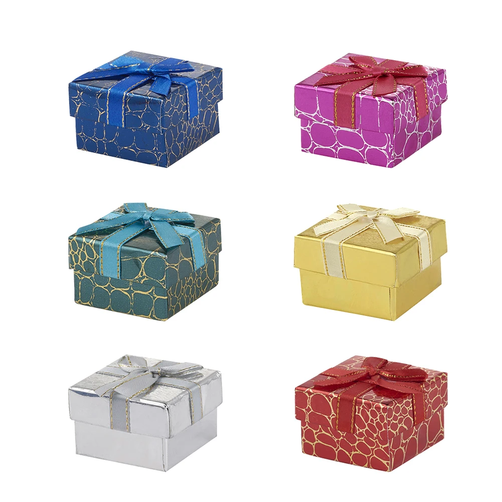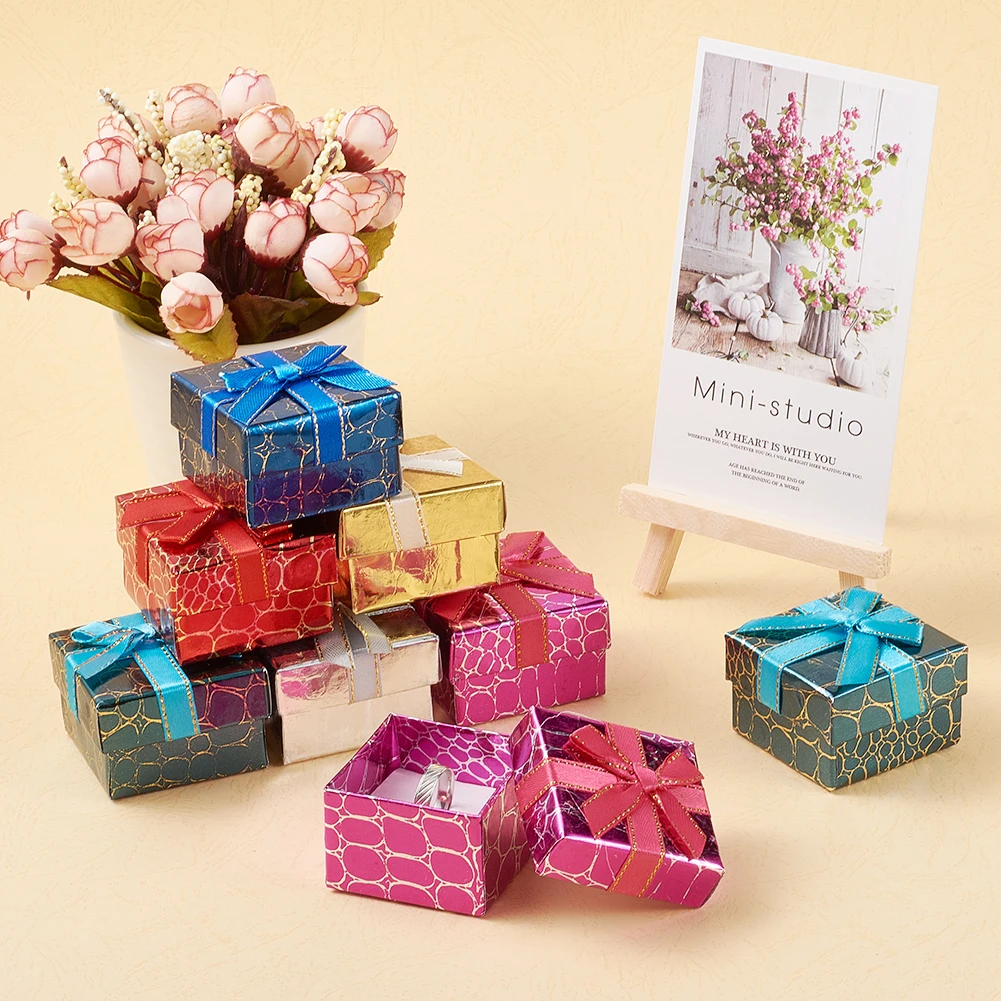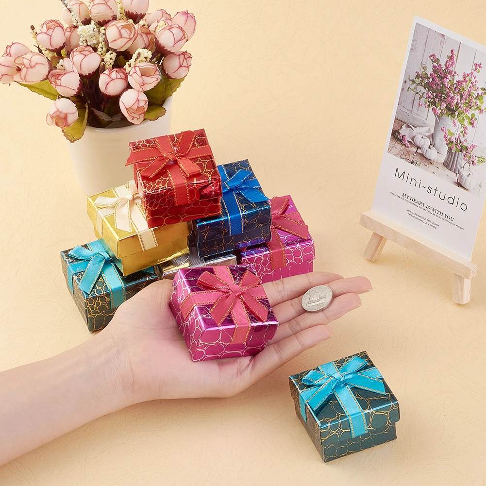 Коробки для ювелирных колец с бантом, 24 шт., квадратные картонные упаковочные коробки с губкой для подарков на день Святого Валентина, разные цвета в произвольном порядке