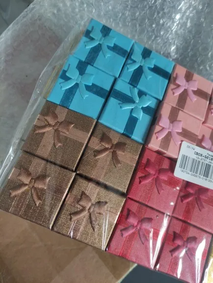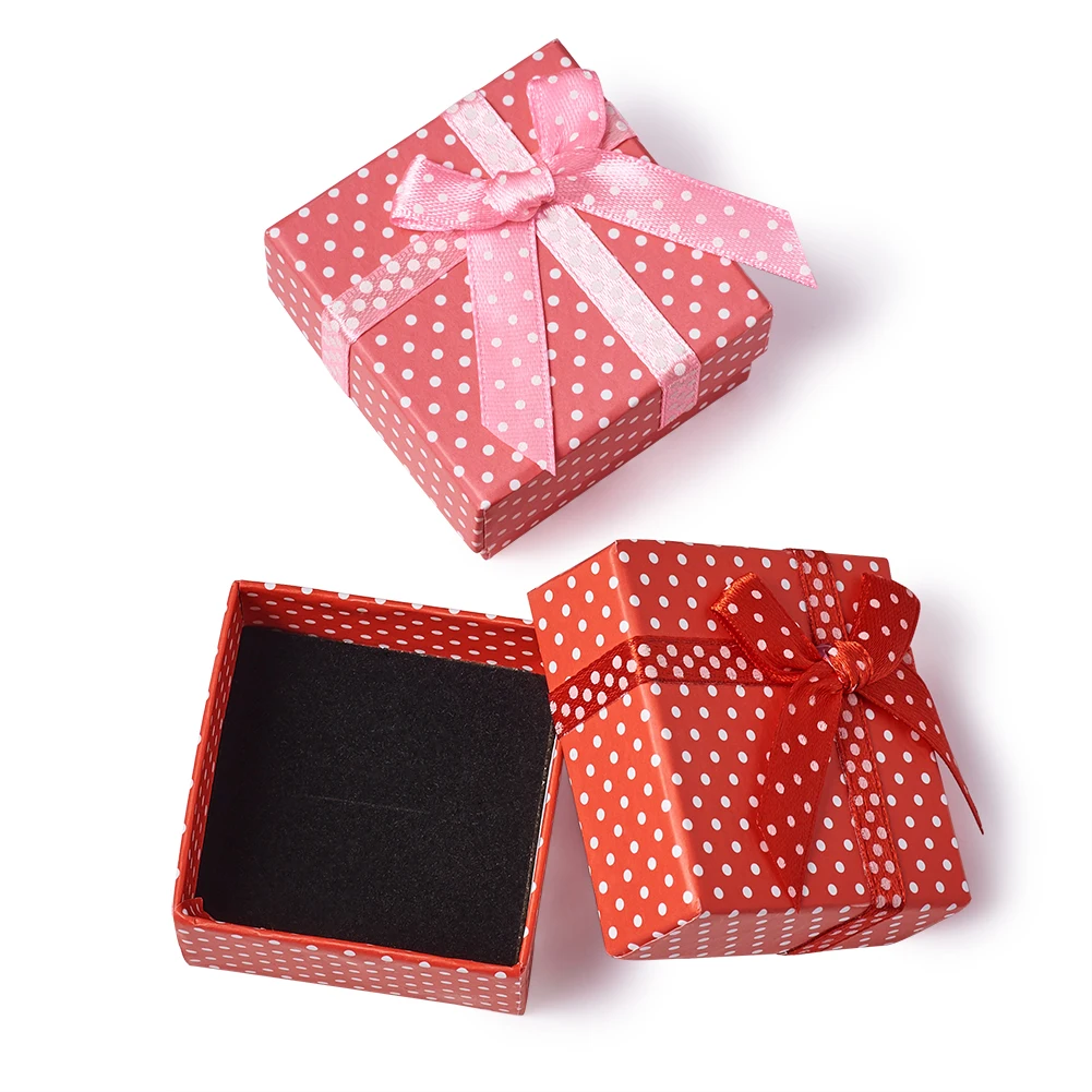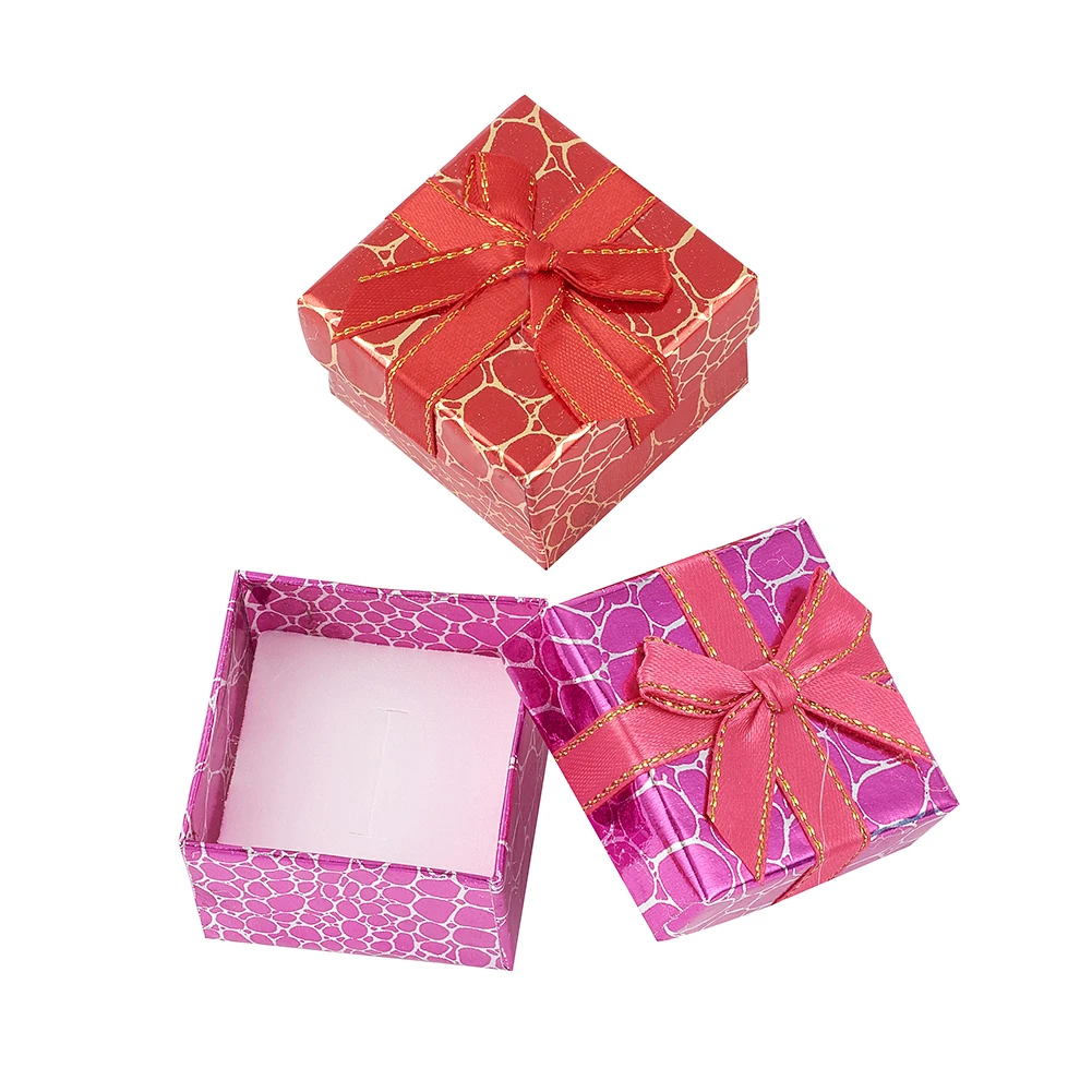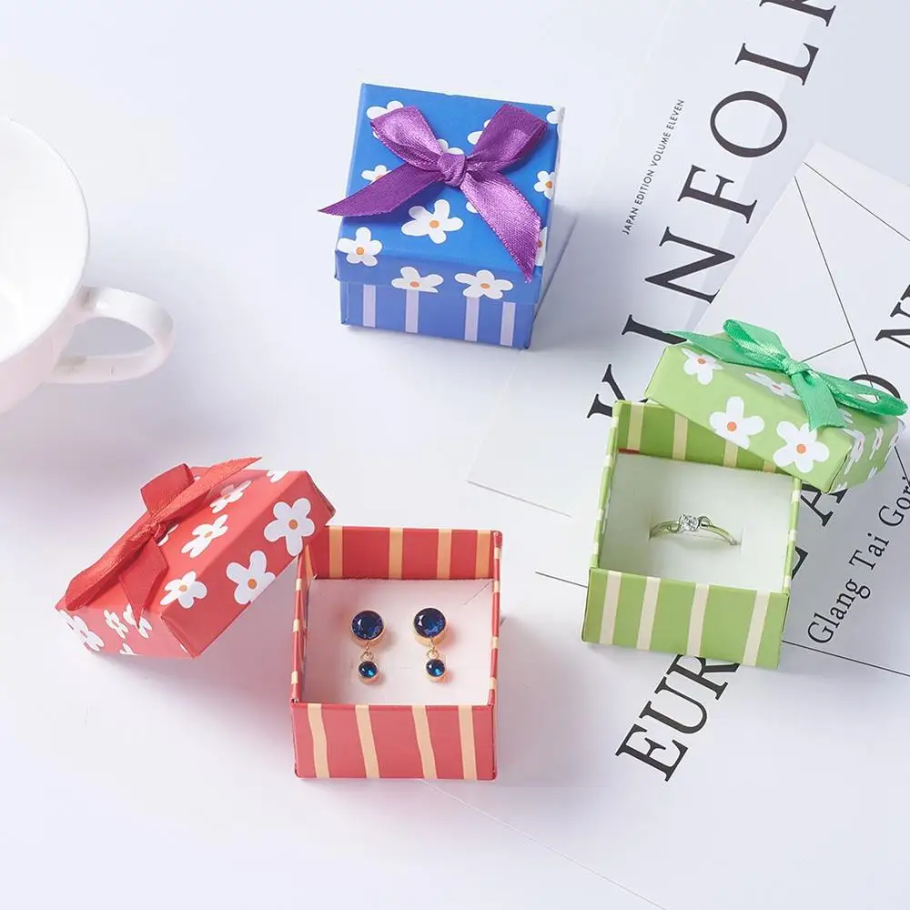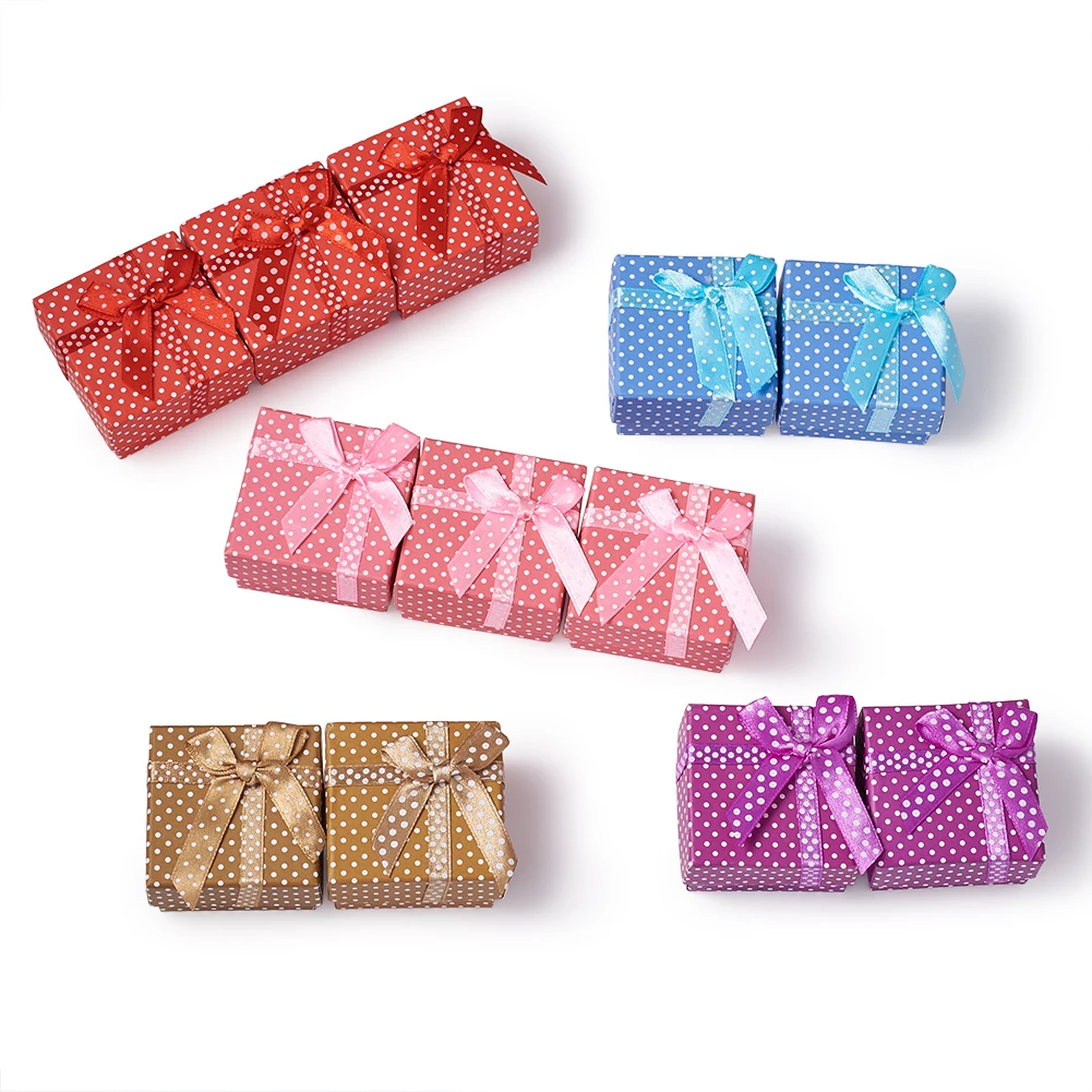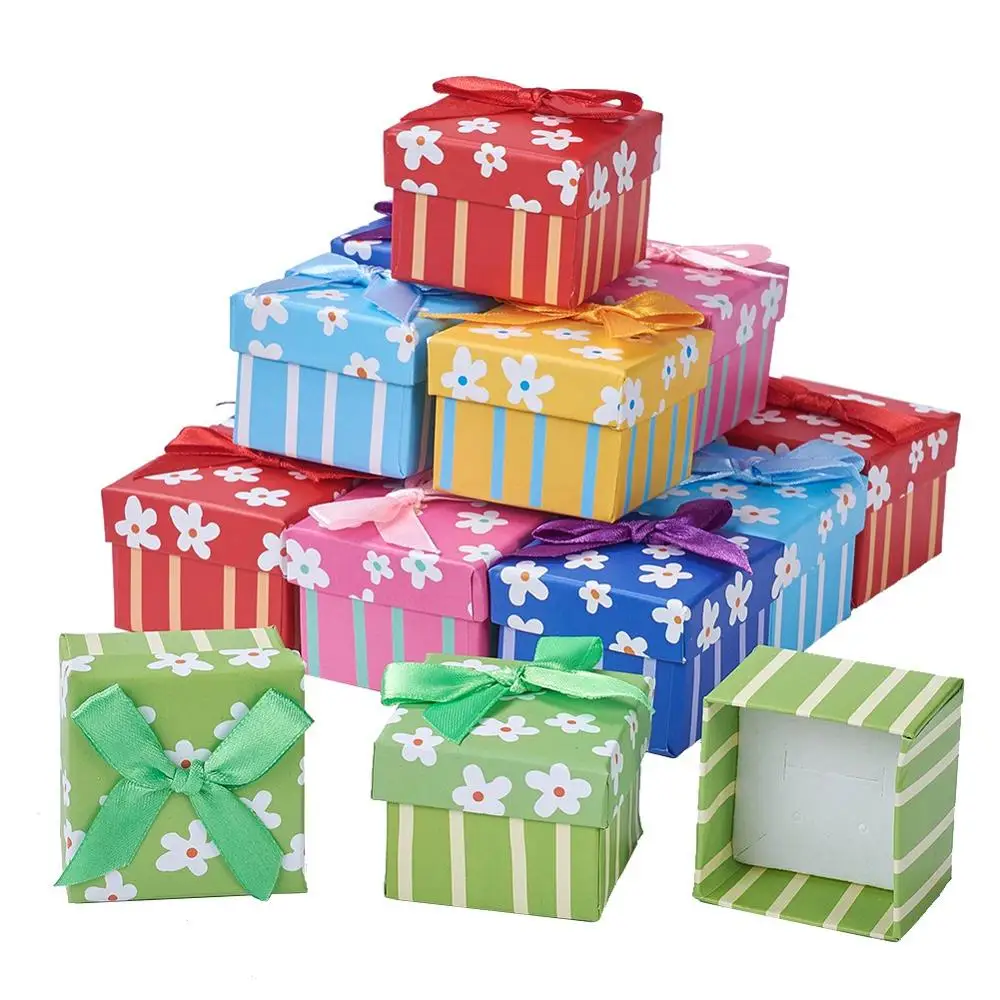 Коробки для ювелирных колец с бантом, 24 шт., квадратные картонные упаковочные коробки с губкой для подарков на день Святого Валентина, разные цвета в произвольном порядке