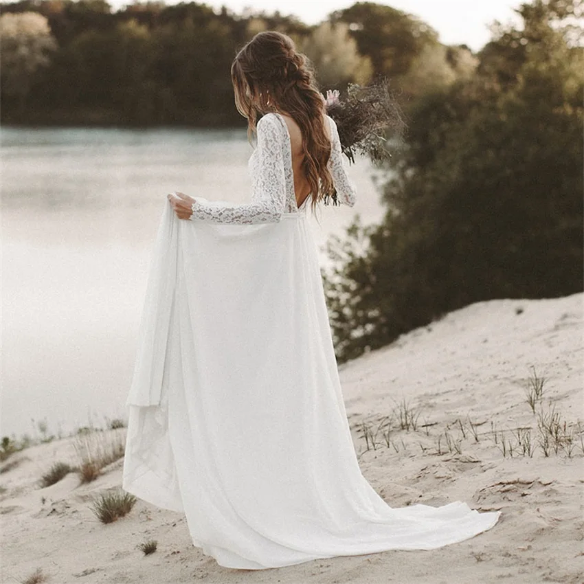 Женское шифоновое платье с длинным рукавом, V-образным вырезом