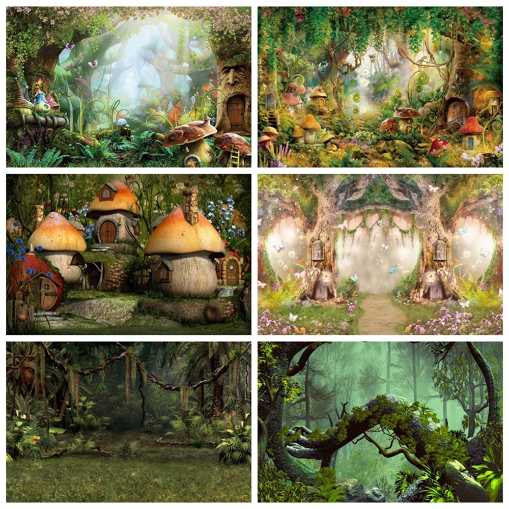 Мечтательный Джунгли Лес природная Страна Чудес сказка гриб фон свадьба ребенок день рождения фотография Фон Фотостудия