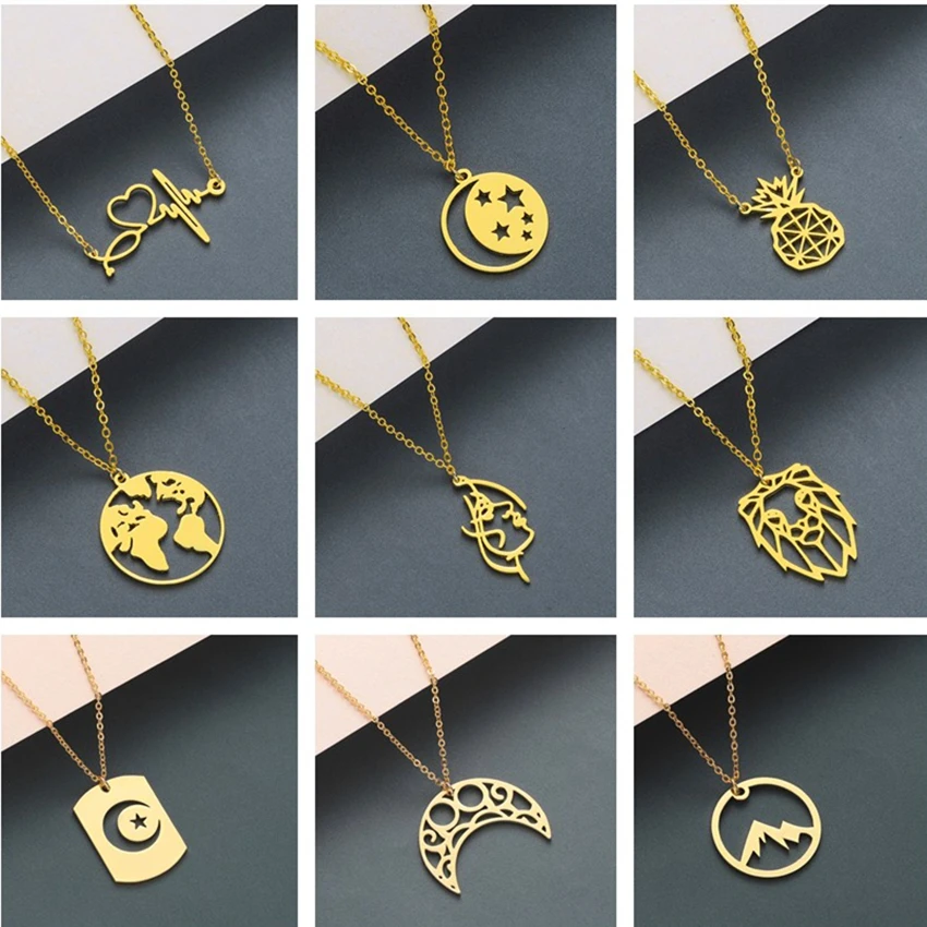 Cxwind Нержавеющая сталь ананас карта мира ожерелье для женщин ювелирные изделия Луна Звезда ожерелья со знаком бесконечности Подвески подарок Bijoux femme