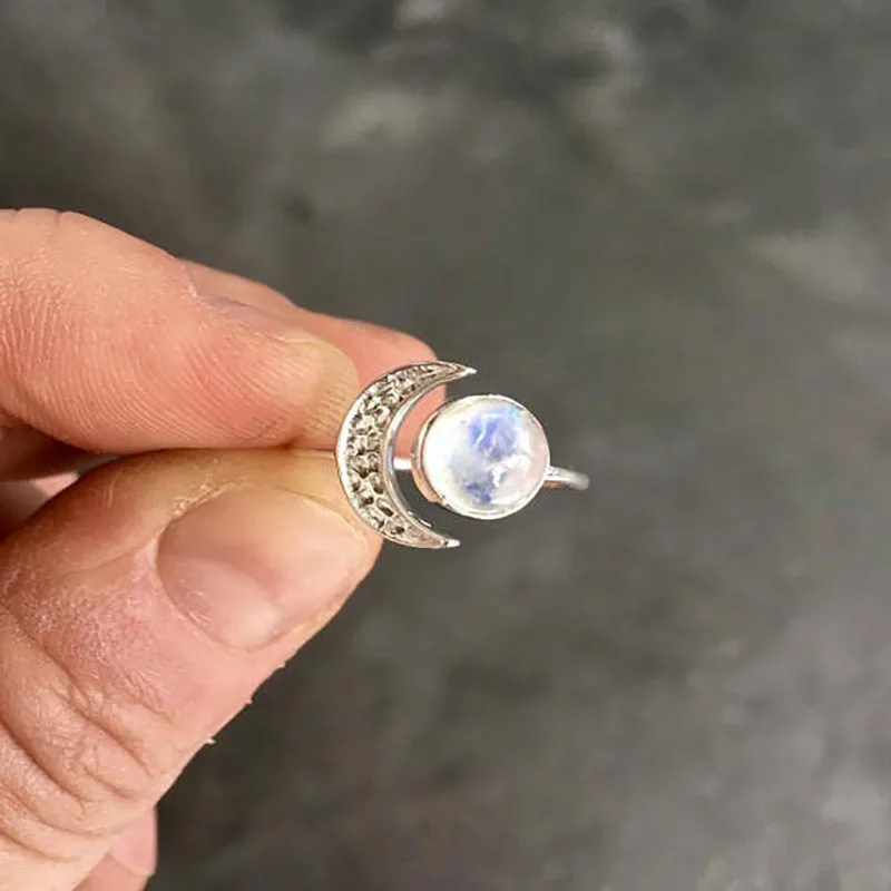 Кольцо женское из серебра 925 пробы с лунным камнем