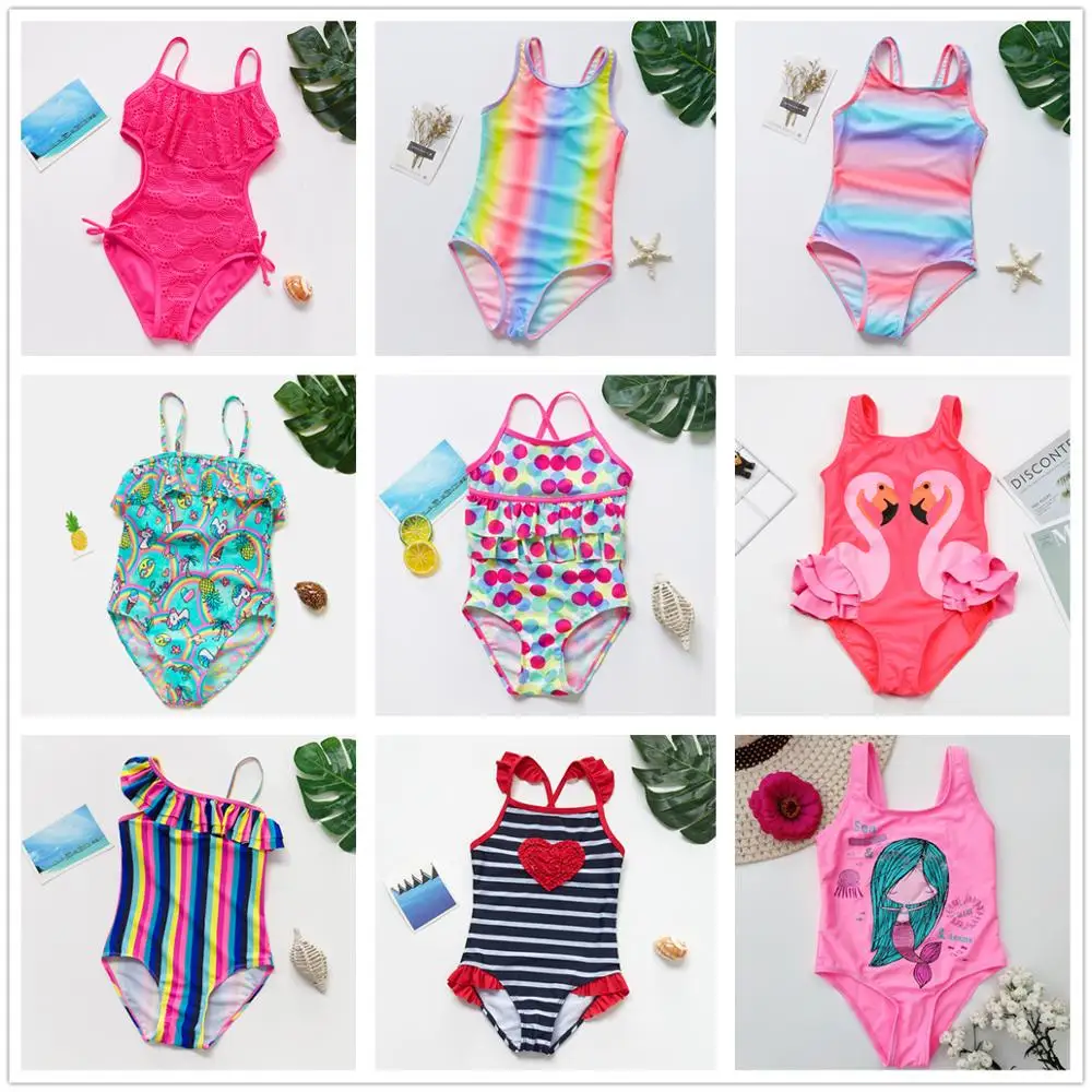 Купальник цвета радуги для девочек 2019, слитный купальник большого...