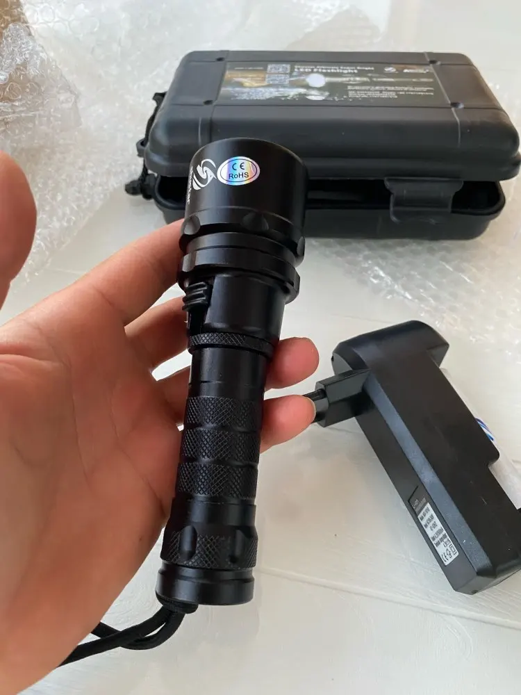 Хороший свет для дайвинга. Был виден в 5 м видимость 12 метров Сделал свет на глубине 20 метров и все еще работает Сплошной свет с более чем 1 часами на глубине света Хорошо сидит на ладони