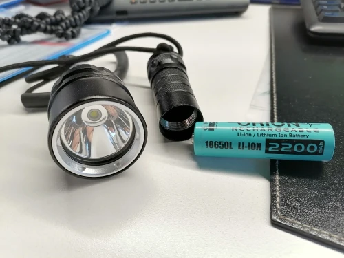 Хороший фонарик на эти деньги. светит ярко, но довольно точечно и не рассеивает свет. Батарейки хватает примерно на 2-3 дайва.