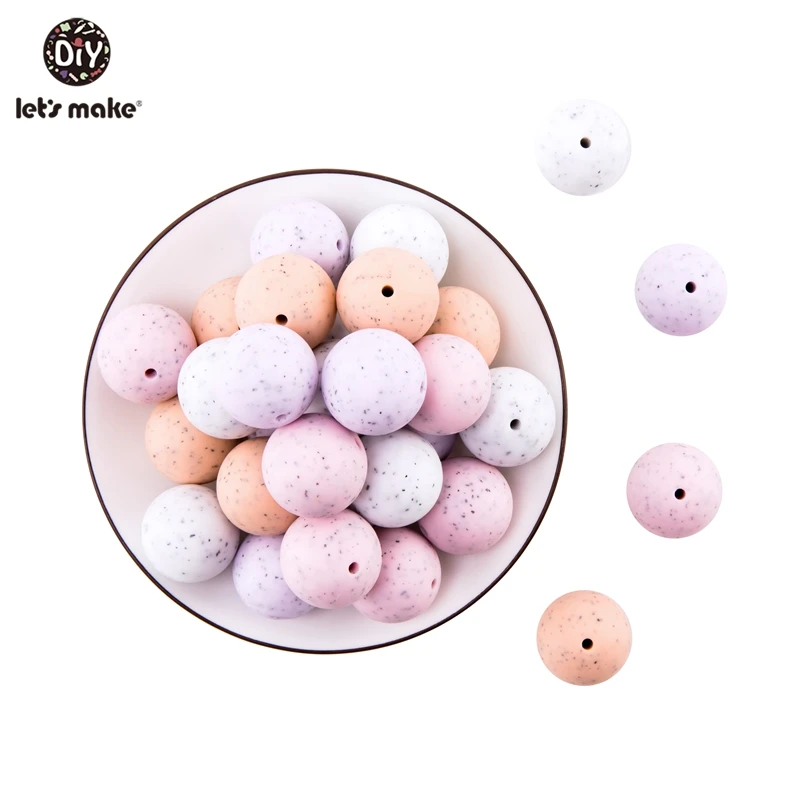 50 шт., круглые силиконовые бусины для прорезывания зубов, 15 мм