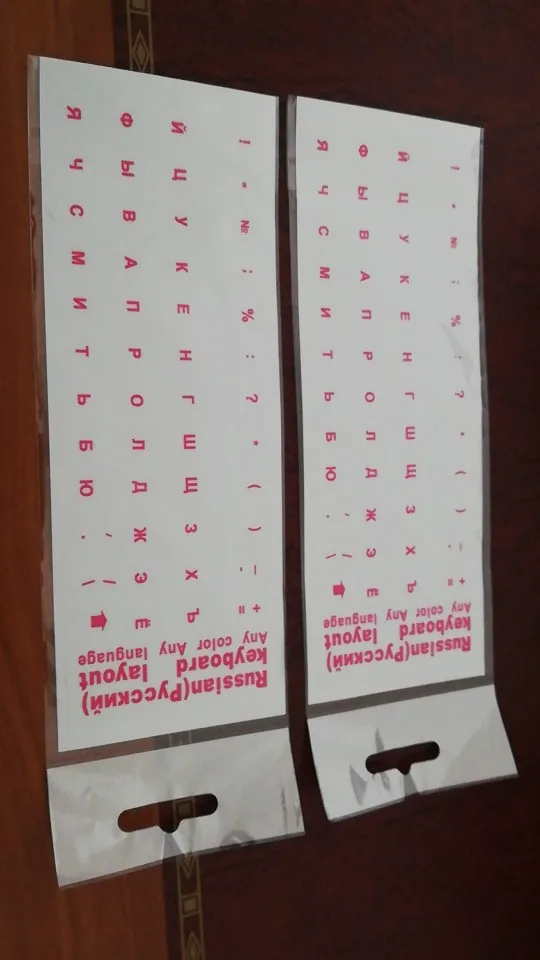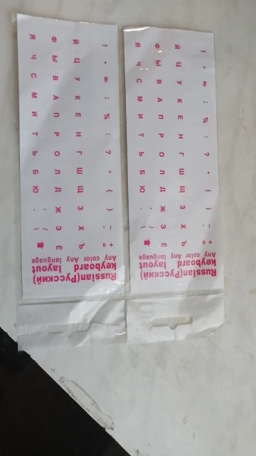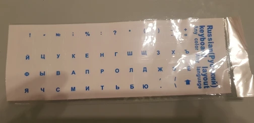 Пришло меньше, чем за две недели, хорошие наклейки, заказывали для затёртых клавиш, некоторые кнопки типа стрелки или слэшей не подошли, но в целом классные