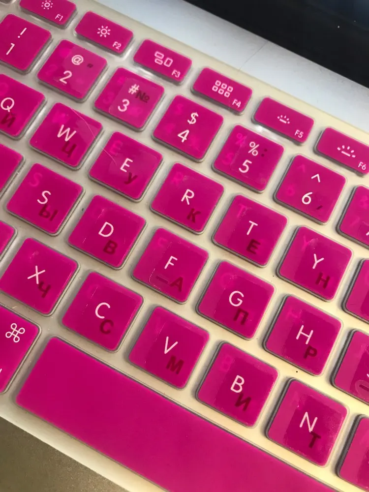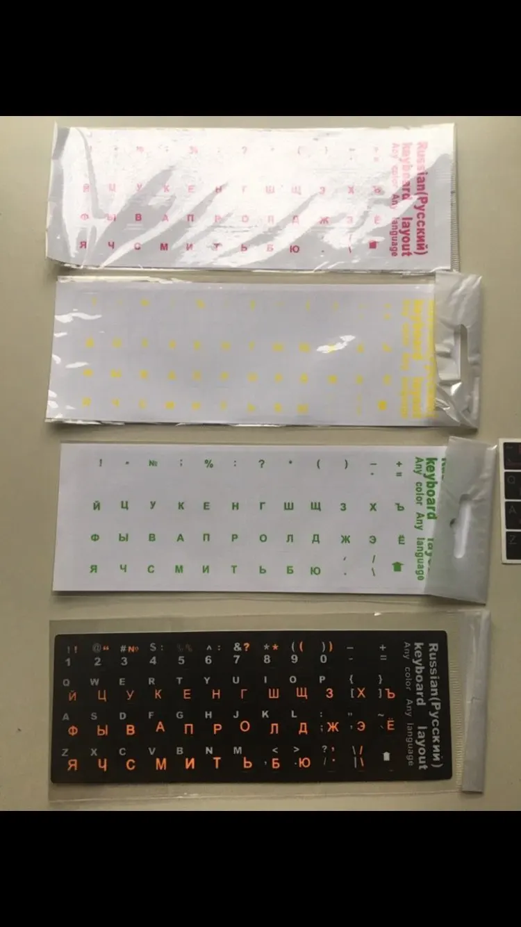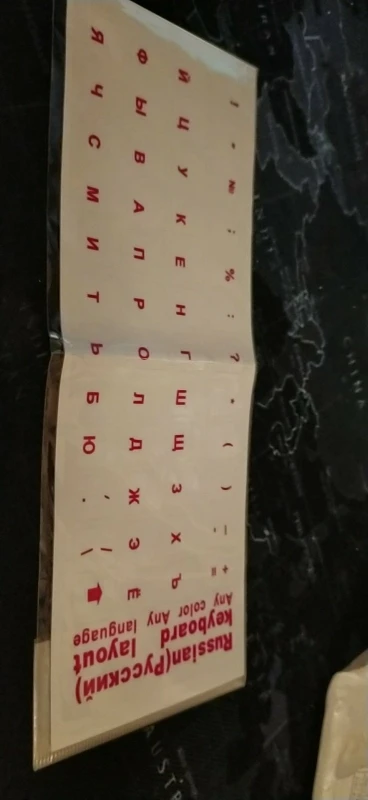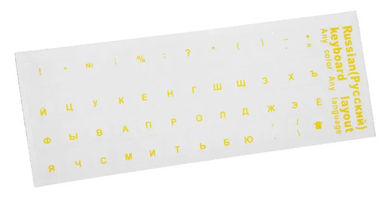 Желтые напечатанные буквы абсолютно не видны на черной клавиатуре ноутбука. Доставка была быстрой, но продукт абсолютно бесполезен для меня