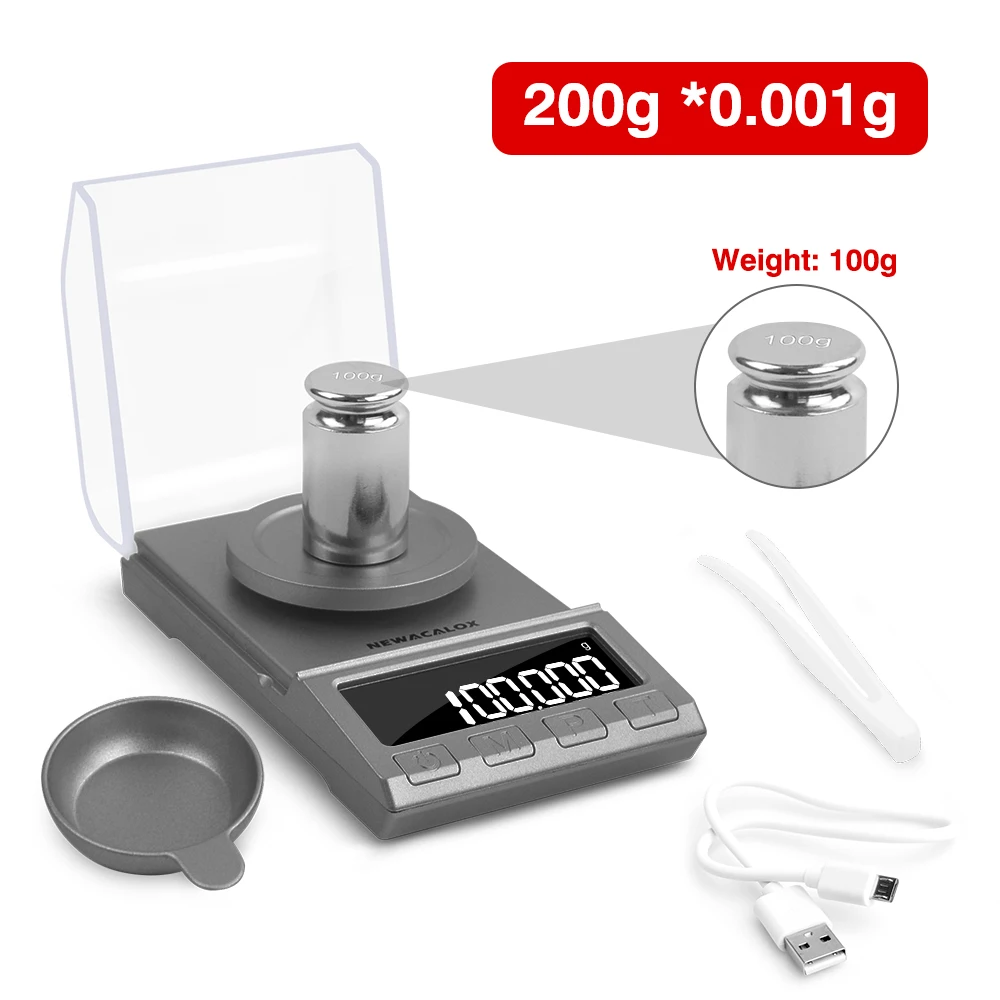 Высокоточные Карманные электронные весы NEWACALOX 50 г200 г х 0,001 г, с USB-разъемом
