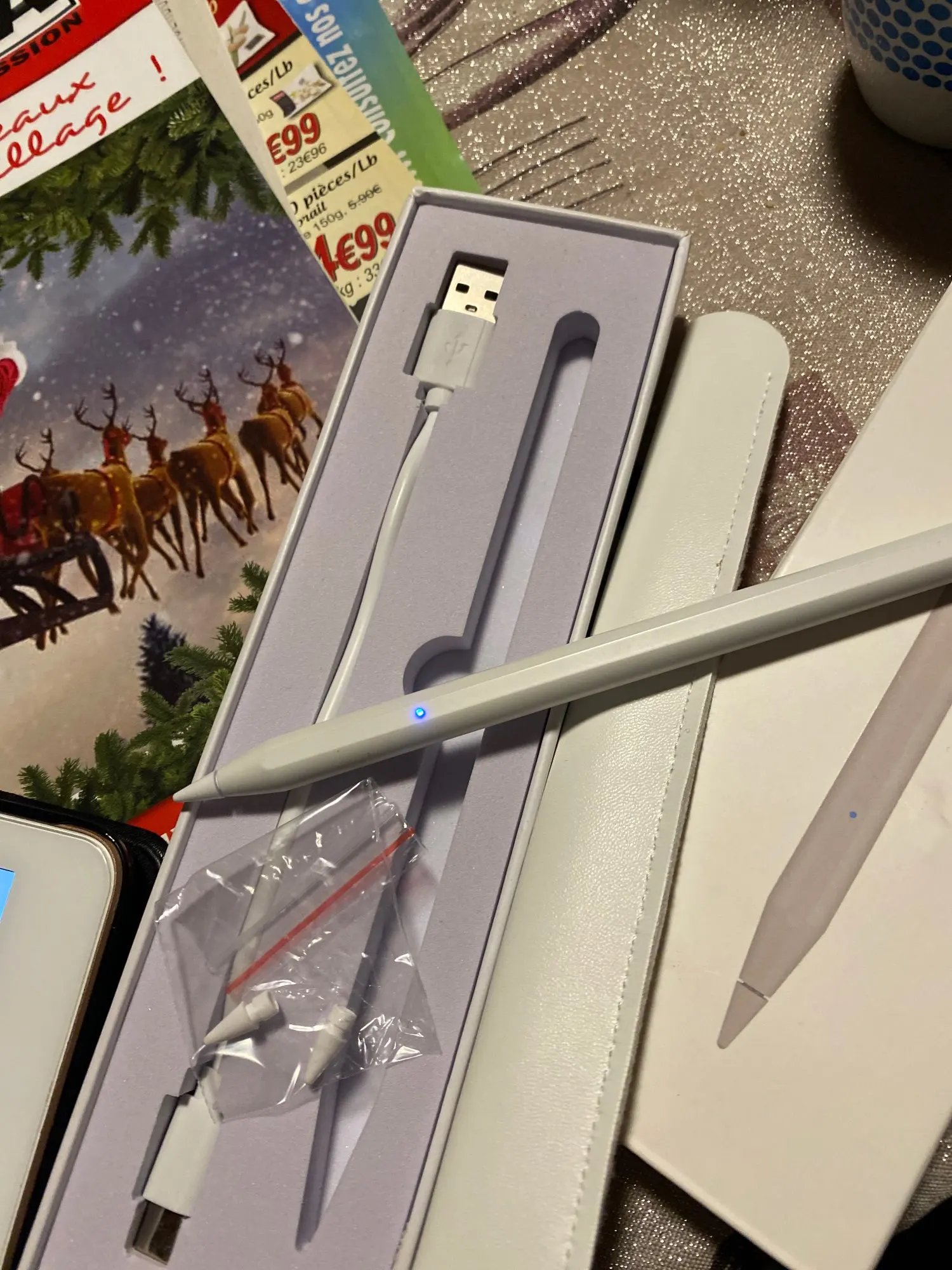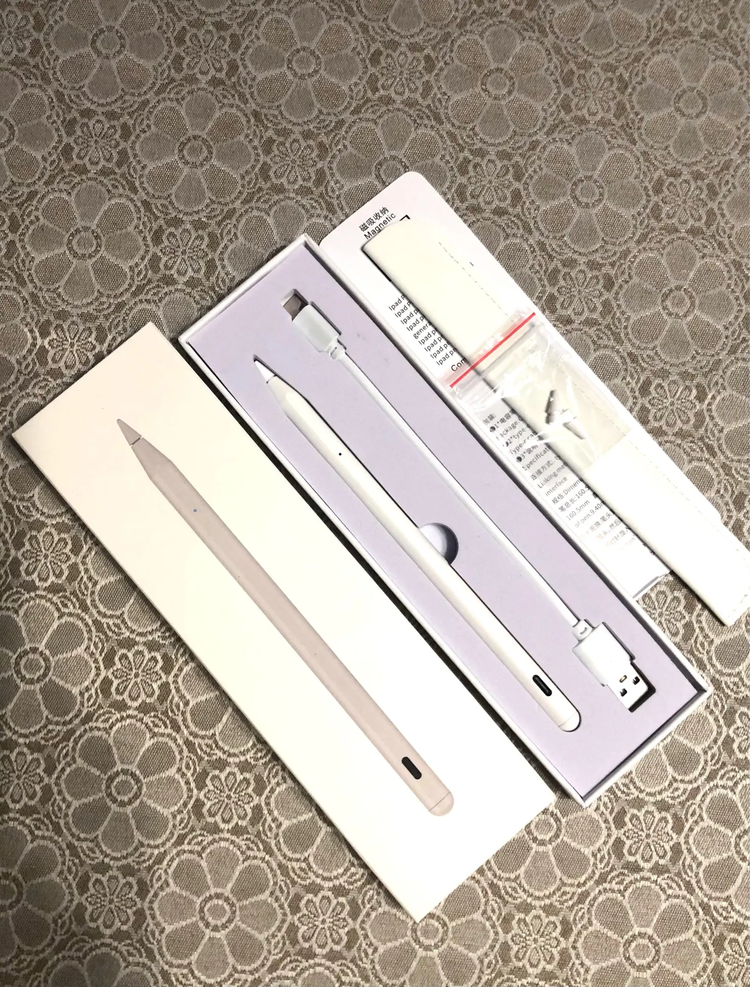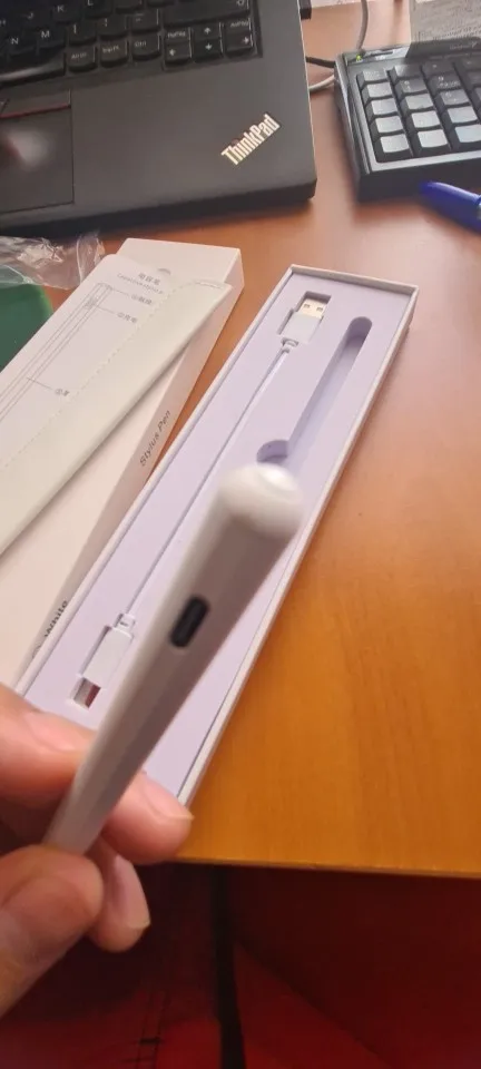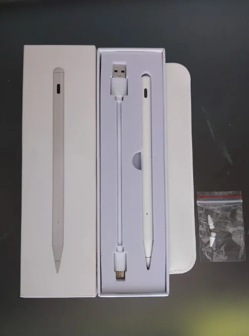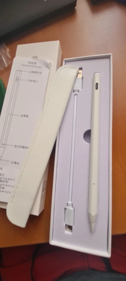 Я с нетерпением жду его и вот он! Стилус действительно легкий и хорошо держится в руке. Он прибыл загружен. Просто прикоснитесь к верхней части ручки, чтобы включить и выключить его. Он поставляется с небольшим мешком, как запасными шахтами, так и кабелем типа C. Он действительно жидкий и идеально подходит для моего IPad 8. Стайлер был очень хорошо упакован. Я настоятельно рекомендую этот товар! Спасибо продавцу!