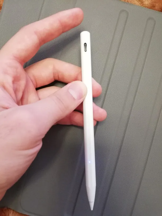 Ручка прибыла в течение 1 месяца, что было быстро, учитывая pandemy. Продукт был очень хорошо упакован и без amacos. У меня никогда не было карандаша Apple, Но вообразите, что это идеальная копия, она легкая, легко скользит (с матовой пленкой), и после того, как вы привыкли к ней, письмо проходит плавно. Постоянная зарядка длится около 4 дней с использованием и занимает около 1 ч для полной зарядки. Светло-голубой, указывающий, что ручка подключена, может слегка раздражать, потому что очень сильная, но легко решается приклеить кусок ленты или использовать капюшон для карандаша.
