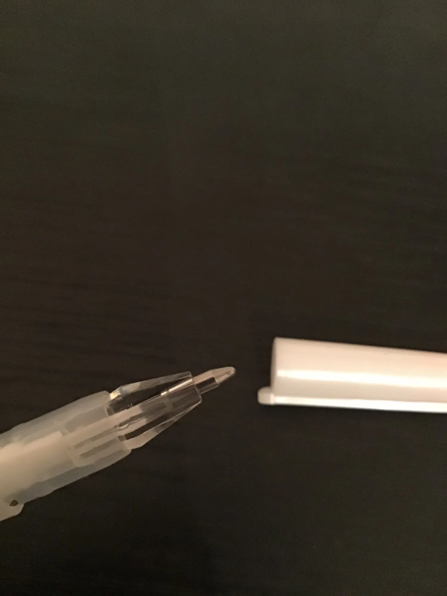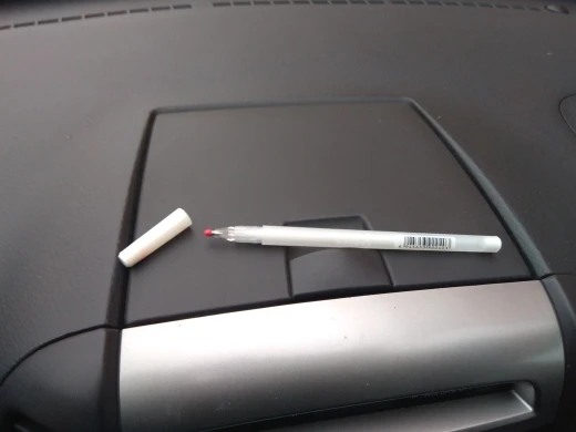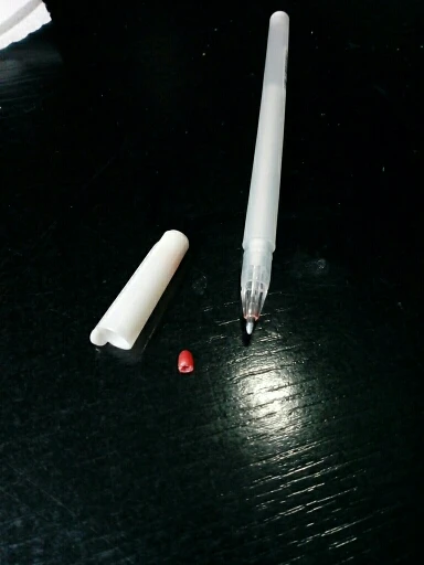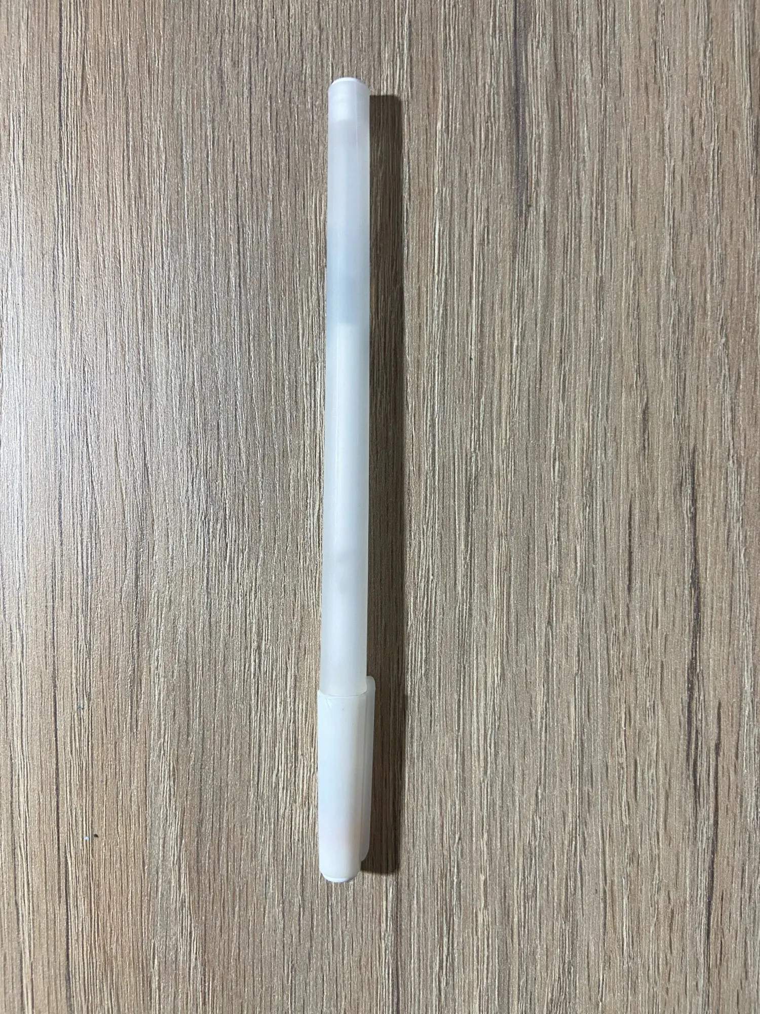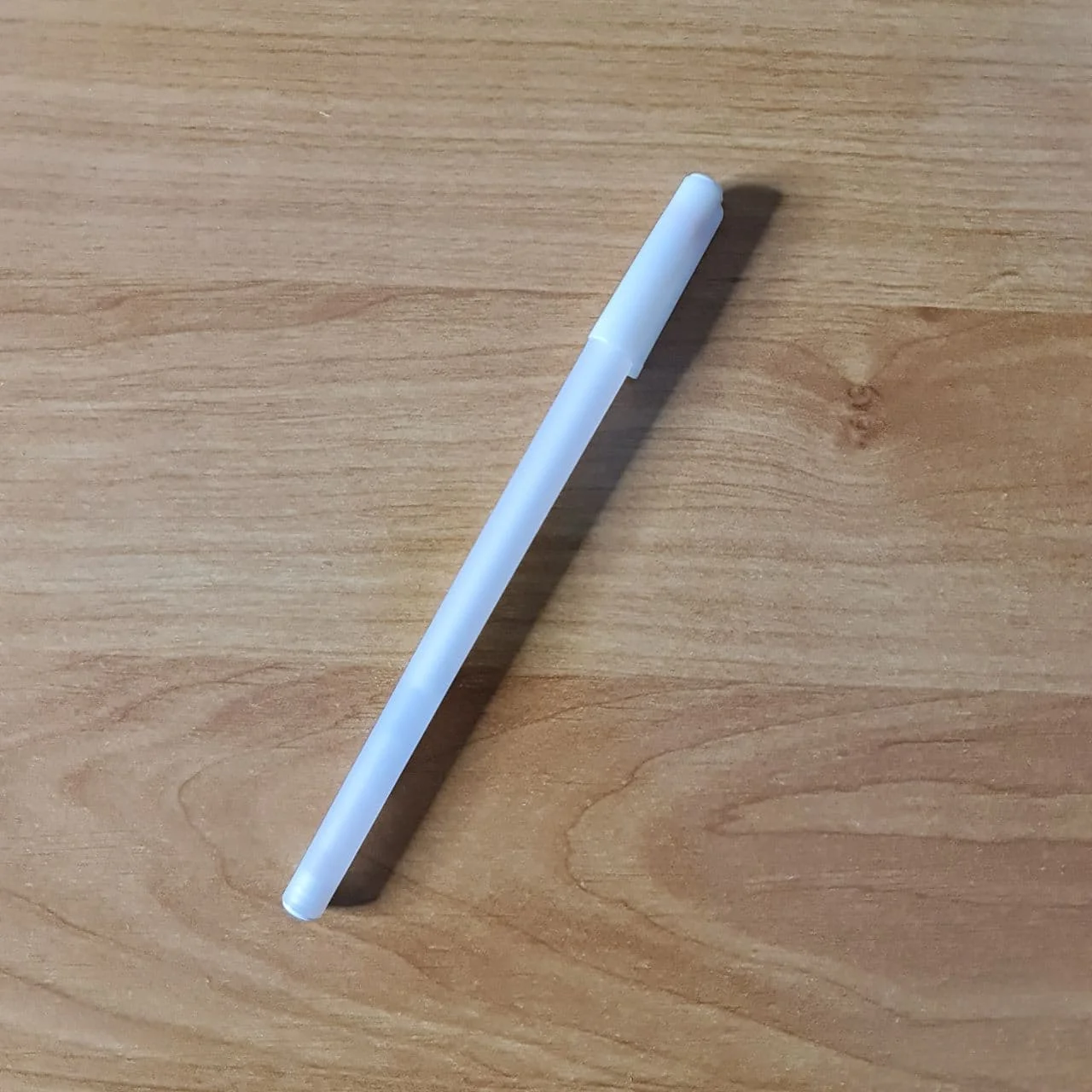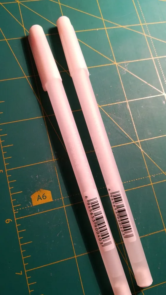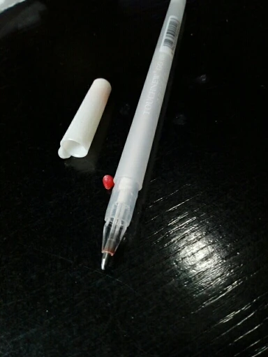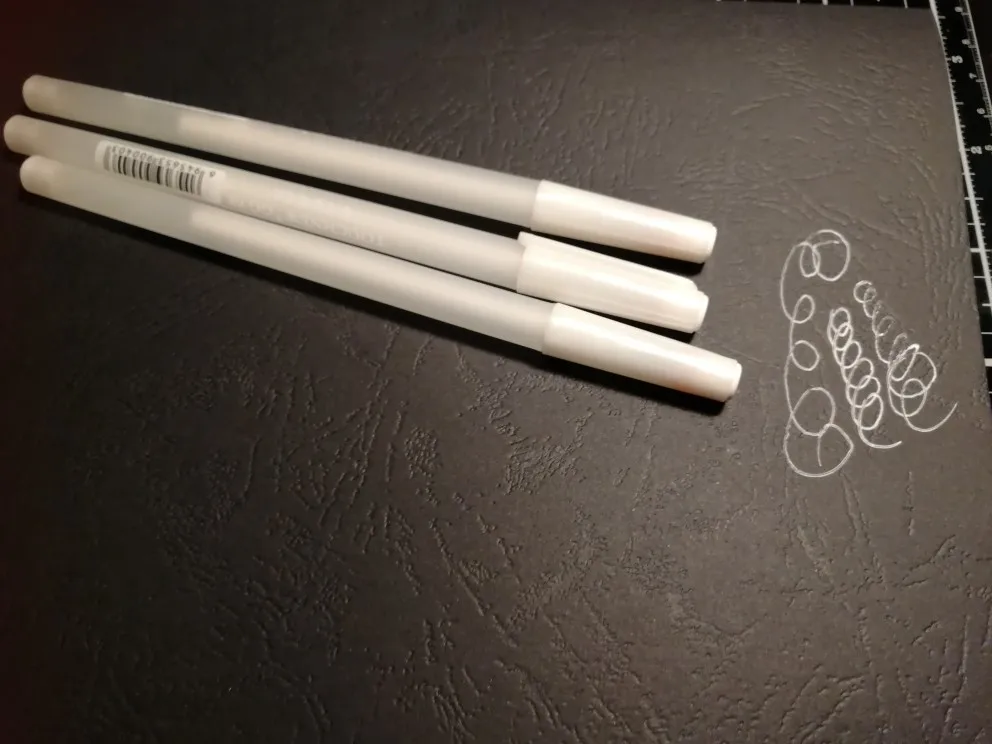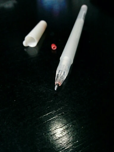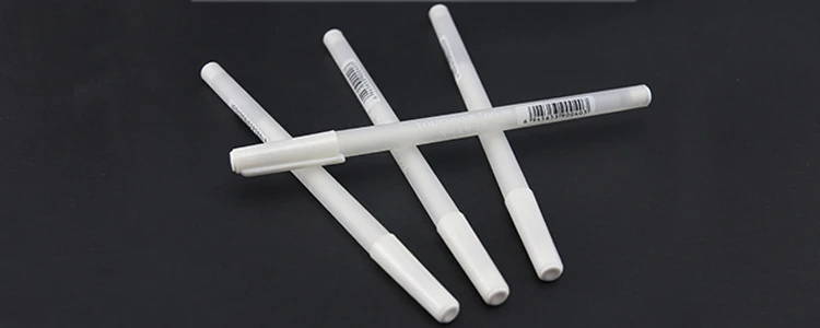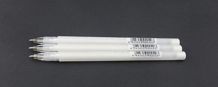 Это гелевая чернильная ручка. Полоса остается немного, как будто спирт, который вы носите, рассеивается и оставляет белый, но не чисто белый. Если вы хотите получить более белый результат, вам придется пройти ту же линию несколько раз. Это не совсем плохо, но это не ядерная цель. Но это делает трюк. Я тоже увидел их хуже. Давайте просто сказать, что это приемлемо. Доставка занимает две с половиной недели.