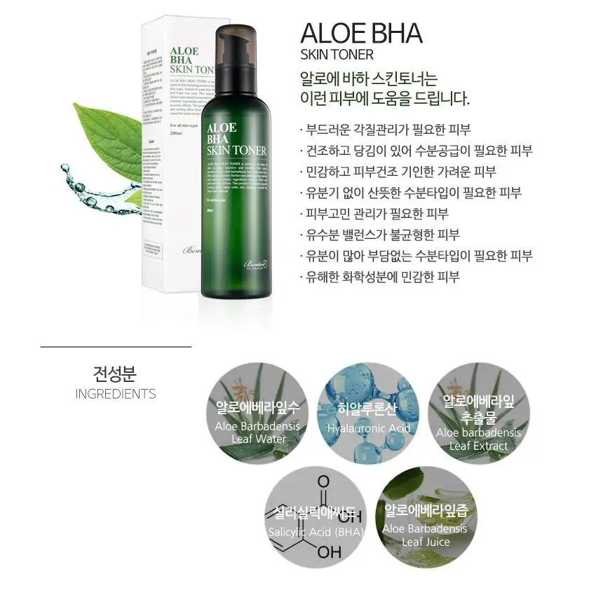 Бентон алоэ BHA кожи тонер 200 мл Алоэ Вера тонер лечение акне уход за лицом Сыворотки увлажняющий отбеливающий крем для лица эссенция для лица Косметика Кореи