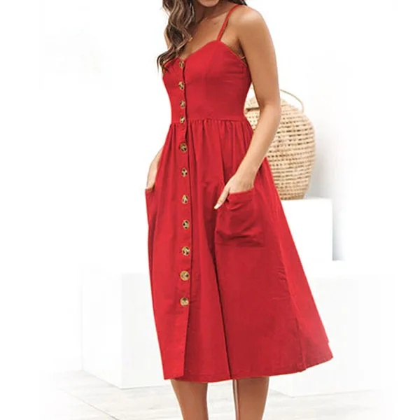 Платье женвечерние с карманами, Элегантный Модный сарафан средней длины без рукавов, с цветочным принтом, с V-образным вырезом, пляжная одежда на пуговицах, на лето