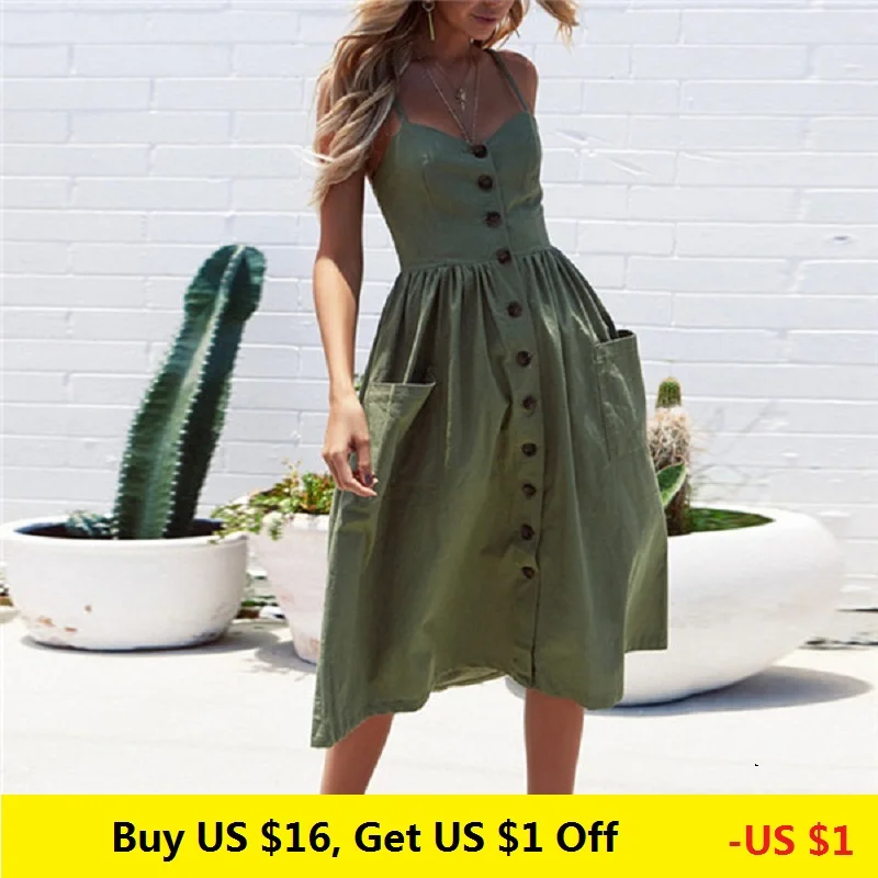 Женское винтажное повседневное пляжное платье миди с пуговицами и о...
