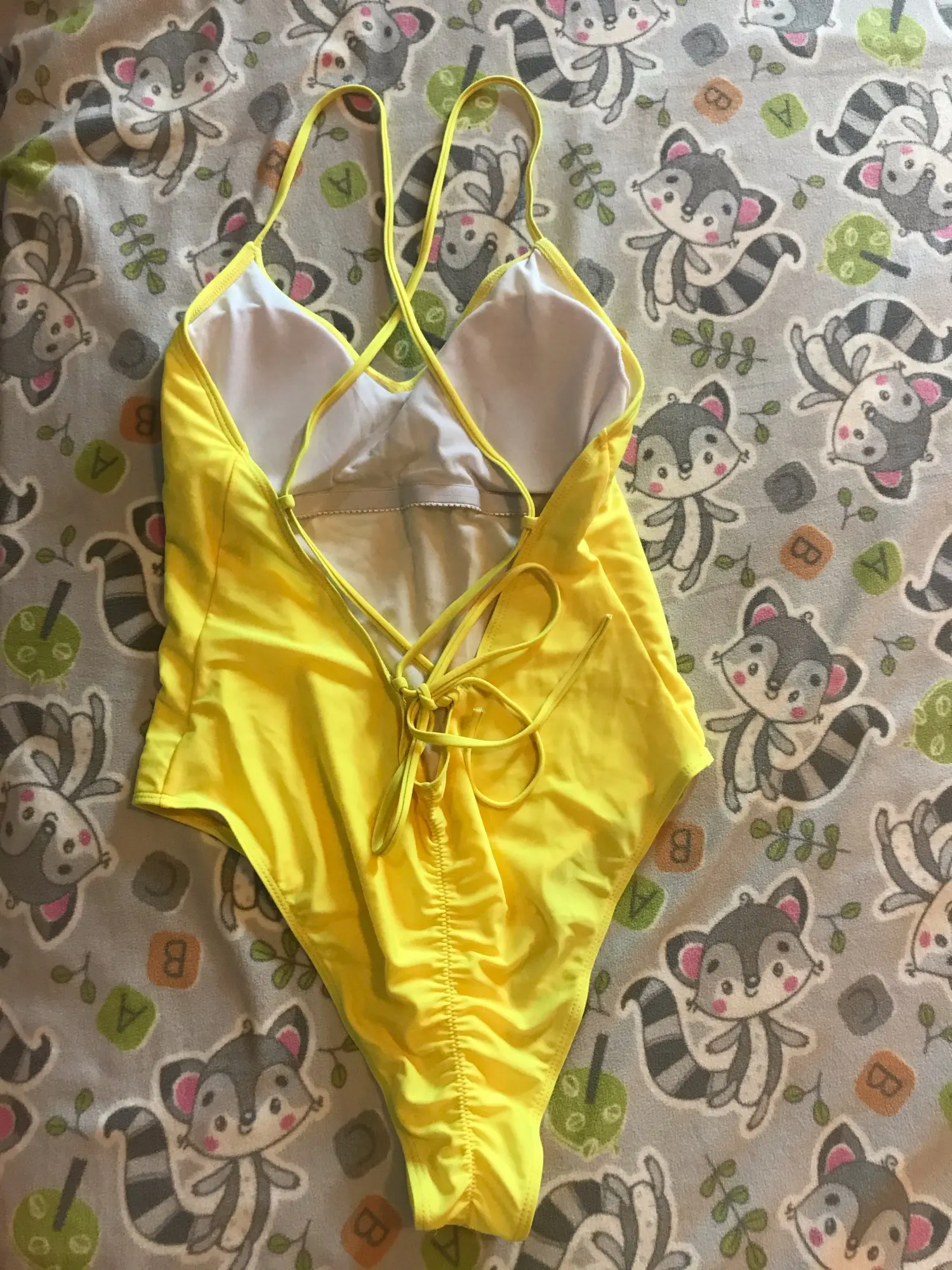 Женский купальник с высокой талией, Желтый купальный костюм в рубчи...