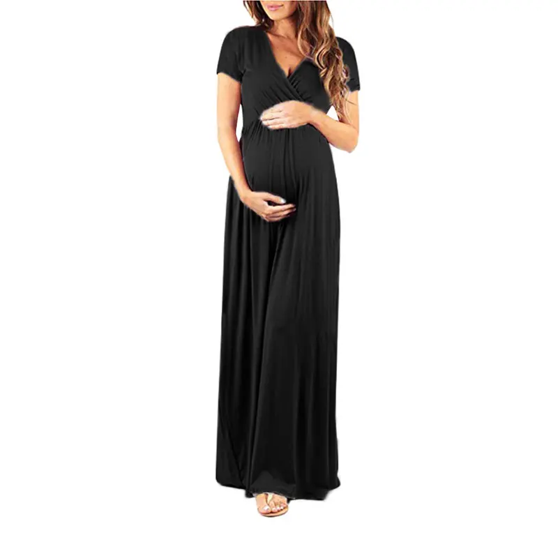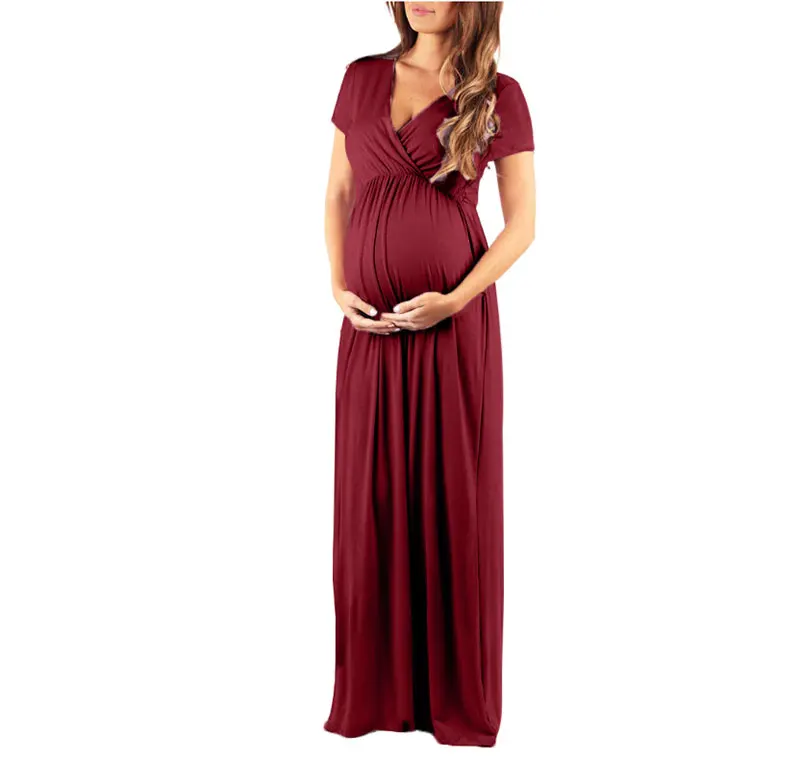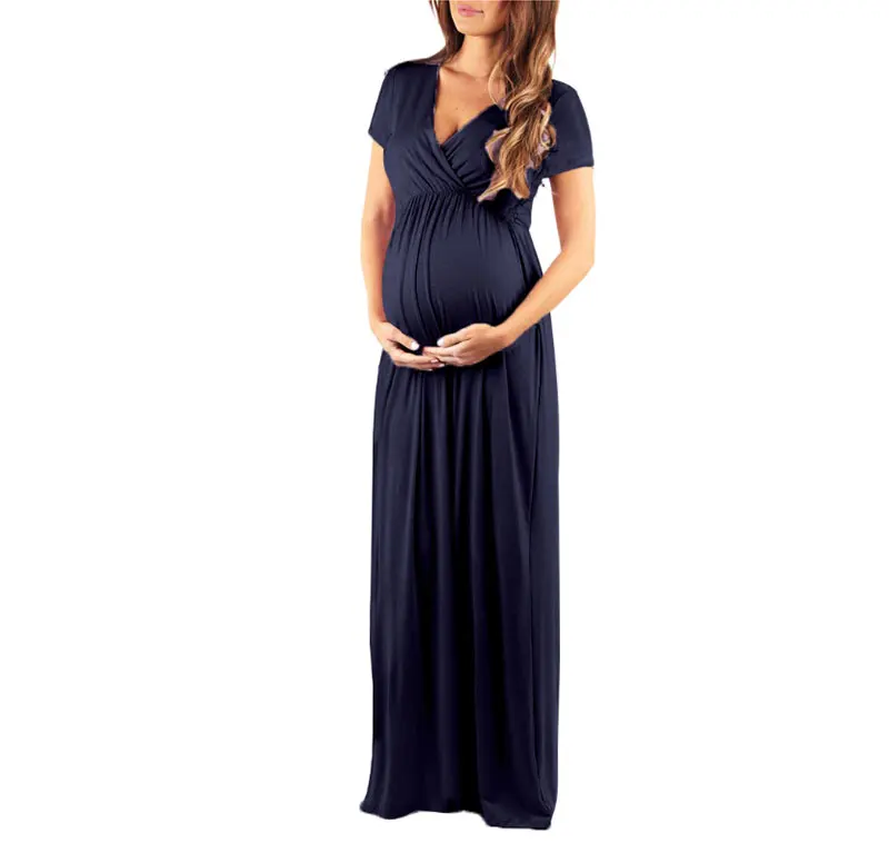 Твердые Цвет платье для беременных для будущих мам платья для беременных длинное платье для женщин Одежда для беременных с коротким рукавом платье для беременных