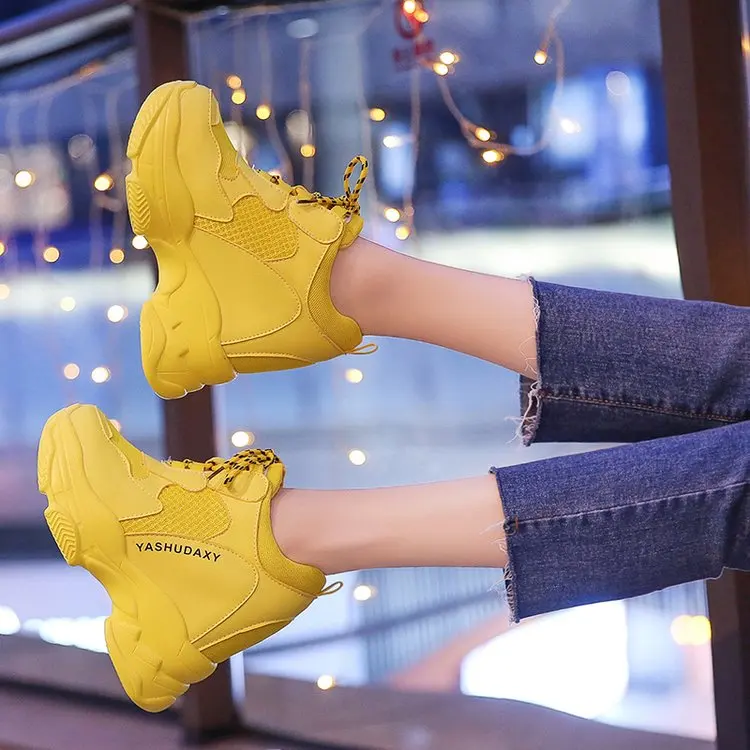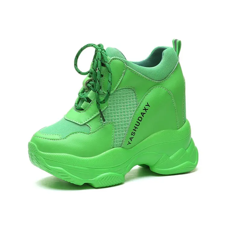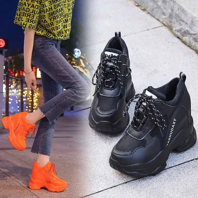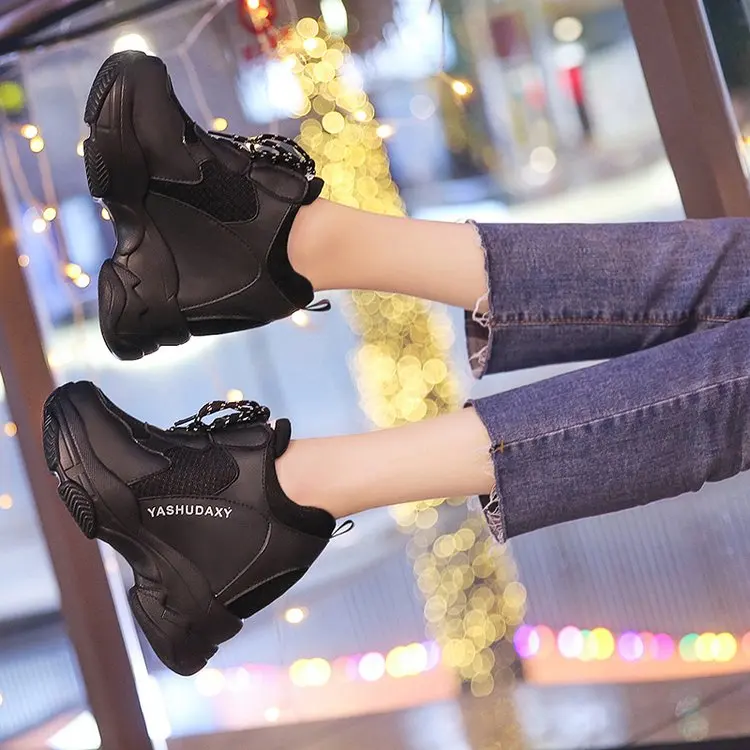 Кроссовки женские на платформе 11 см, Повседневная модная обувь на высокой танкетке, дышащие, на толстой подошве, на осень