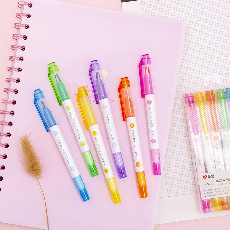 6 шт.упак. флуоресцентный яркого цвета, хрустальные маркер с двойной головкой флуоресцентная ручка для рисования подарочные канцелярские принадлежности Эсколар...