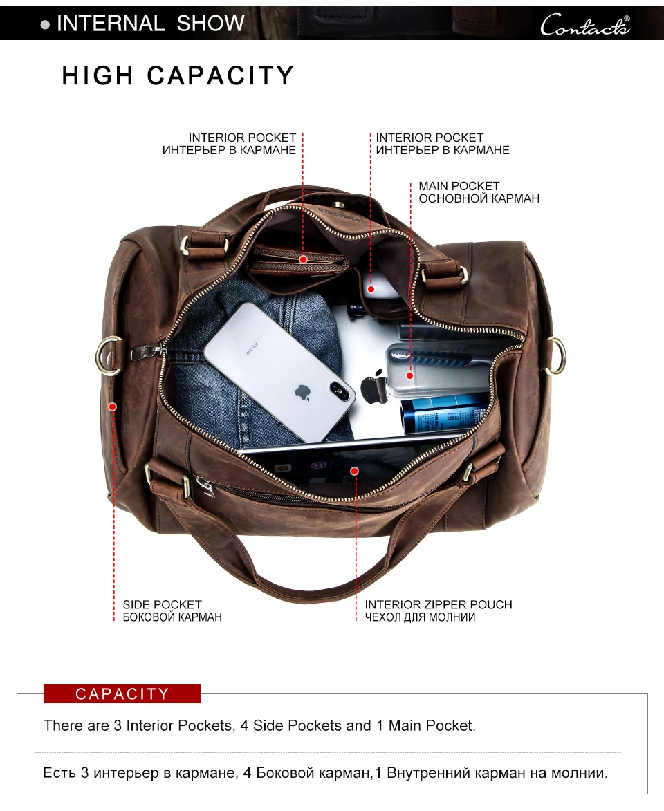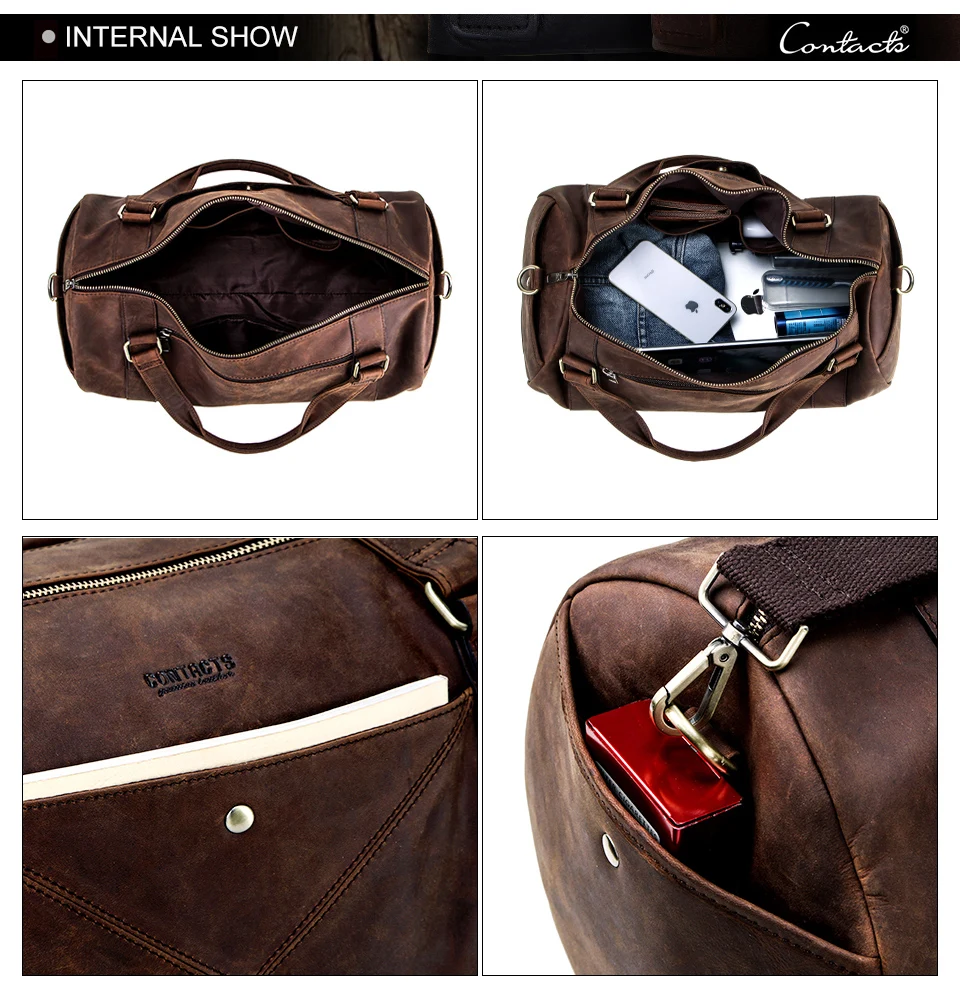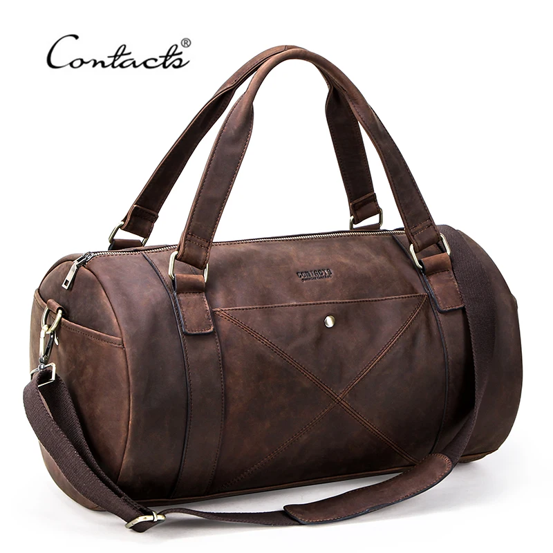 Мужская сумка из натуральной кожи CONTACT'S, большая вместительность, винтажная дорожная сумка