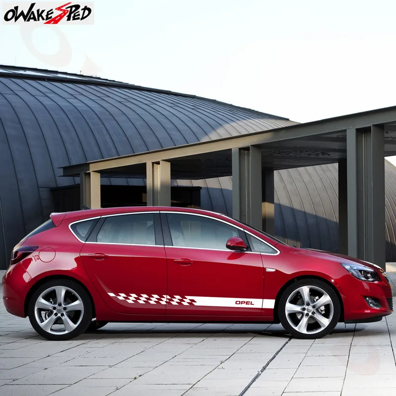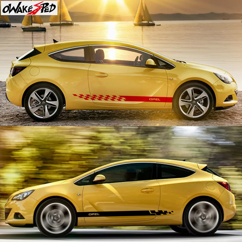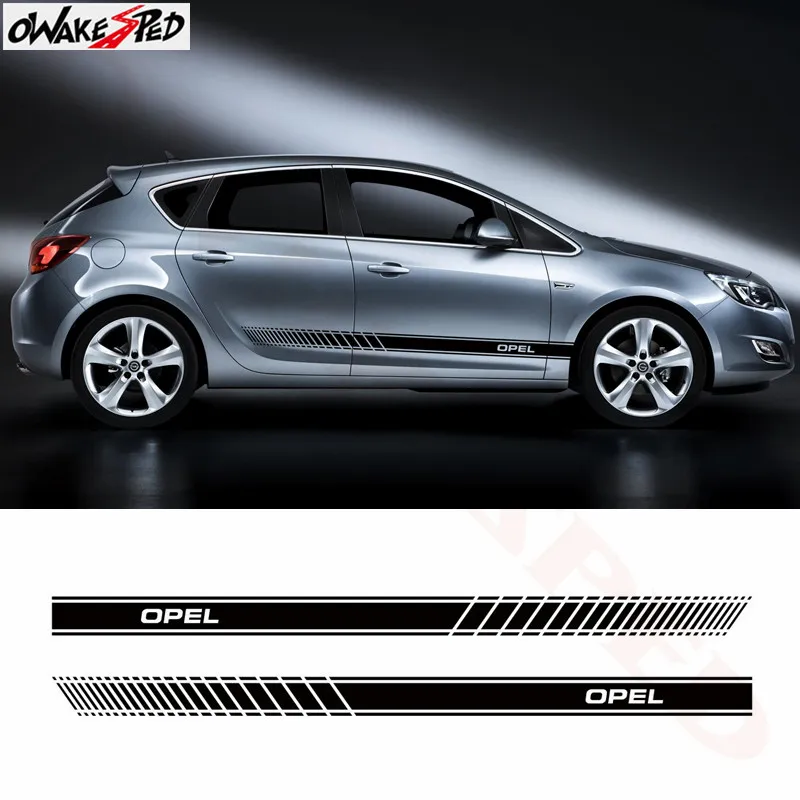 2 шт. наклейки для автомобиля s, декоративные наклейки для двери кузова, наклейки для юбки с боковыми полосками, наклейки для Opel Astra H K J, авто модифицированные аксессуары, наклейки