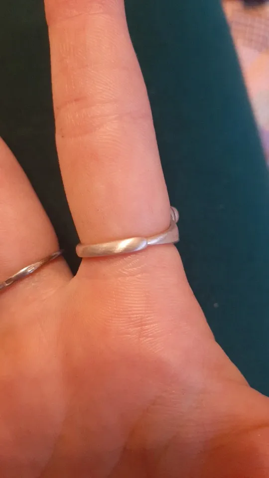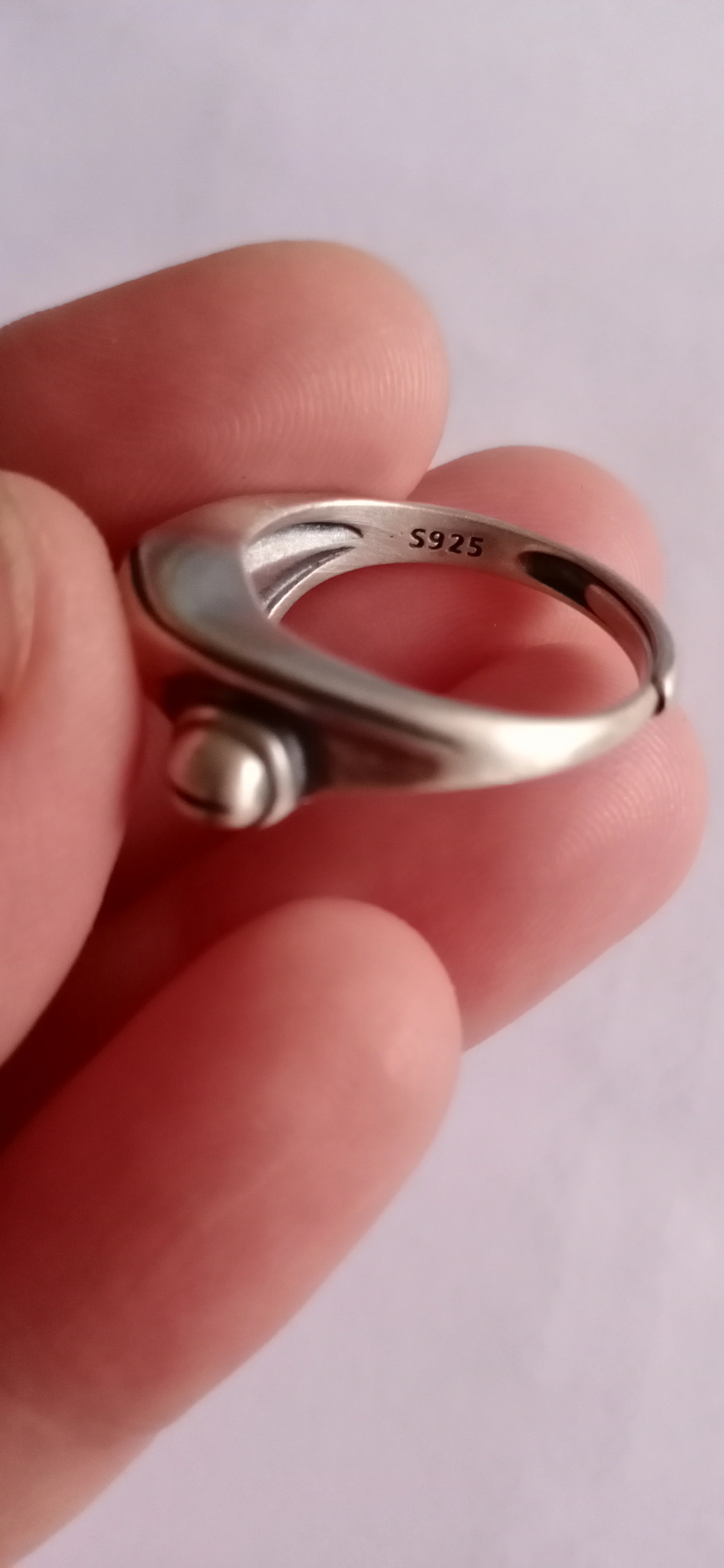 Очень милый и особенный. Это не зеркальная полировка, а шершавая шлифовка, которая делает его матовым. Кажется, это настоящее серебро 925 пробы, но время покажет. Размер хорошо регулируется. Без изменений Размер 8. Не слишком большой или слишком маленький и не слишком тяжелый. Мне очень нравится. Обязательно закажите больше у этого продавца. Отслеживание waa точное и товар был отправлен быстро.