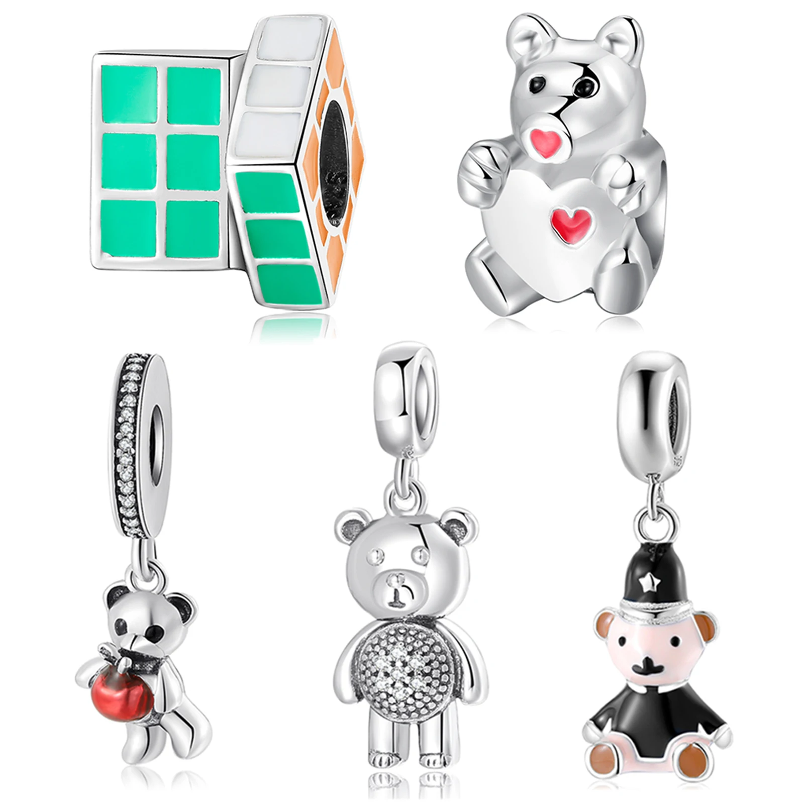 925 Стерлинговое Серебро, игра мозга, радуга, волшебный пазл, медведь, кулон, бусины, изготовление ювелирных изделий, подходит для оригинальных шармов, браслет