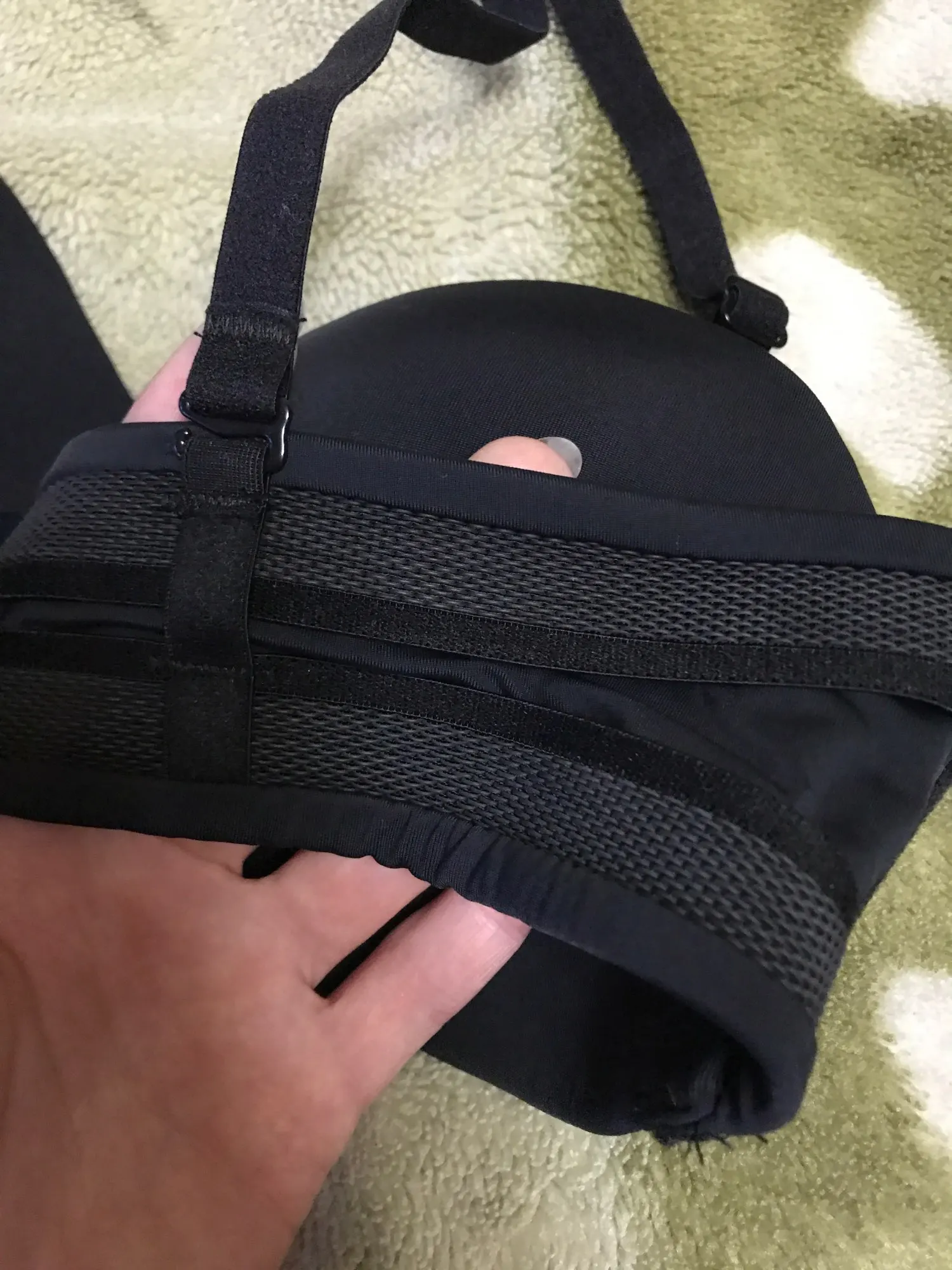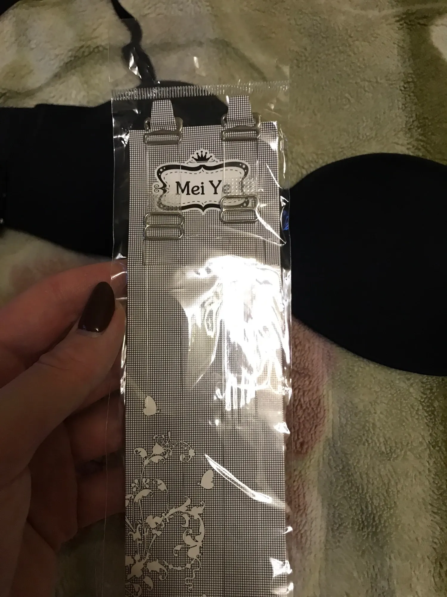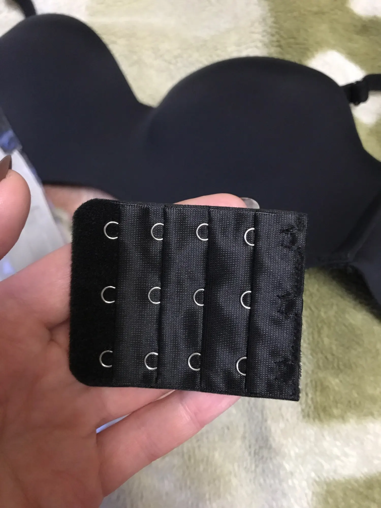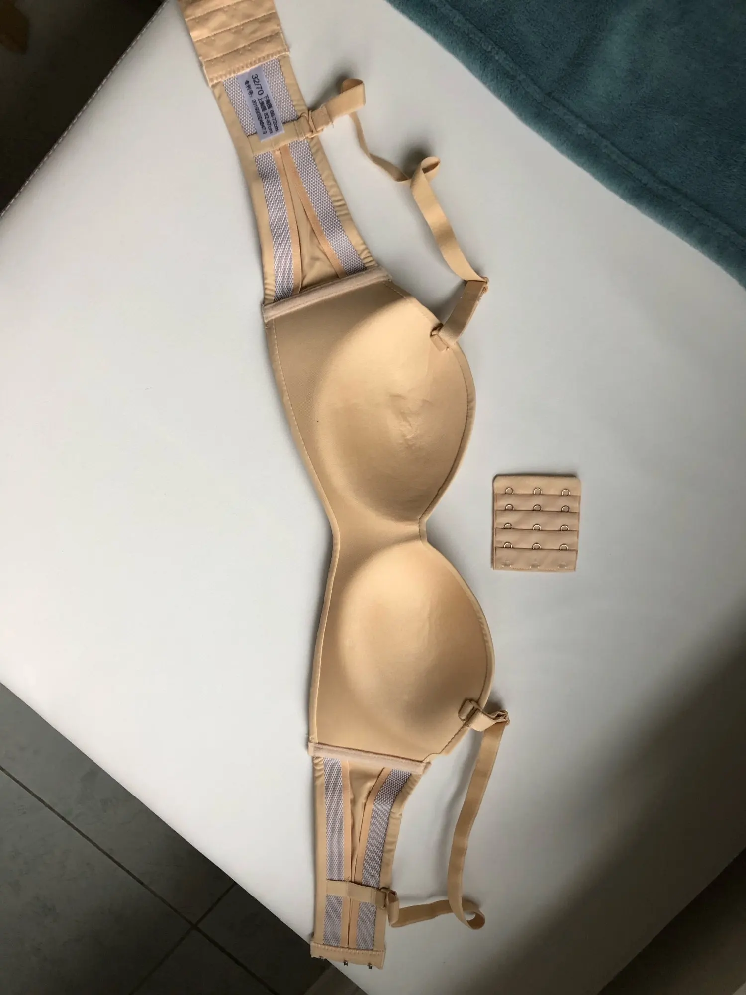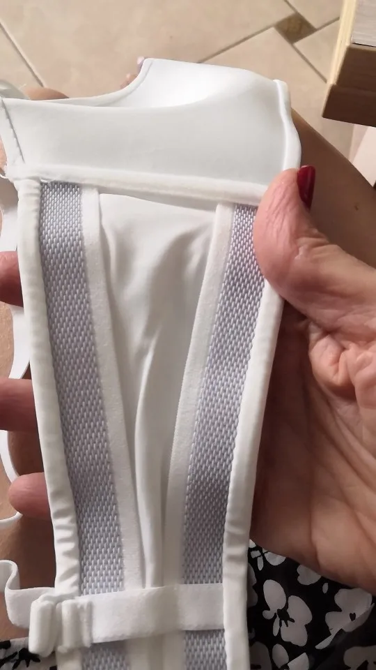 Мои параметры под грудью 75, грудь 84-85, широко расставлена, ношу 75б, такой и взяла. Застегнулся на первую из четырёх линию крючков. Сидит хорошо, жаль только, что нет силиконовой держателя вдоль нижнего шва, как на похожих бюстах от тезенис, а так один в один. Держится на груди без лямок. А вот сами лямки коротковаты, если их надеть, начинает расплющивать грудь и она вылезает из чашек как опара. Длина лямки 37 см. Буду носить без них. В комплекте расширитель, прозрачные лямки и сережки листики. Мне достался за 200 с чем-то рублей с купонами. Удивительно, что даже лямки не выглядят дешманскими, как это бывает у китайских изделий. Оч хорошо