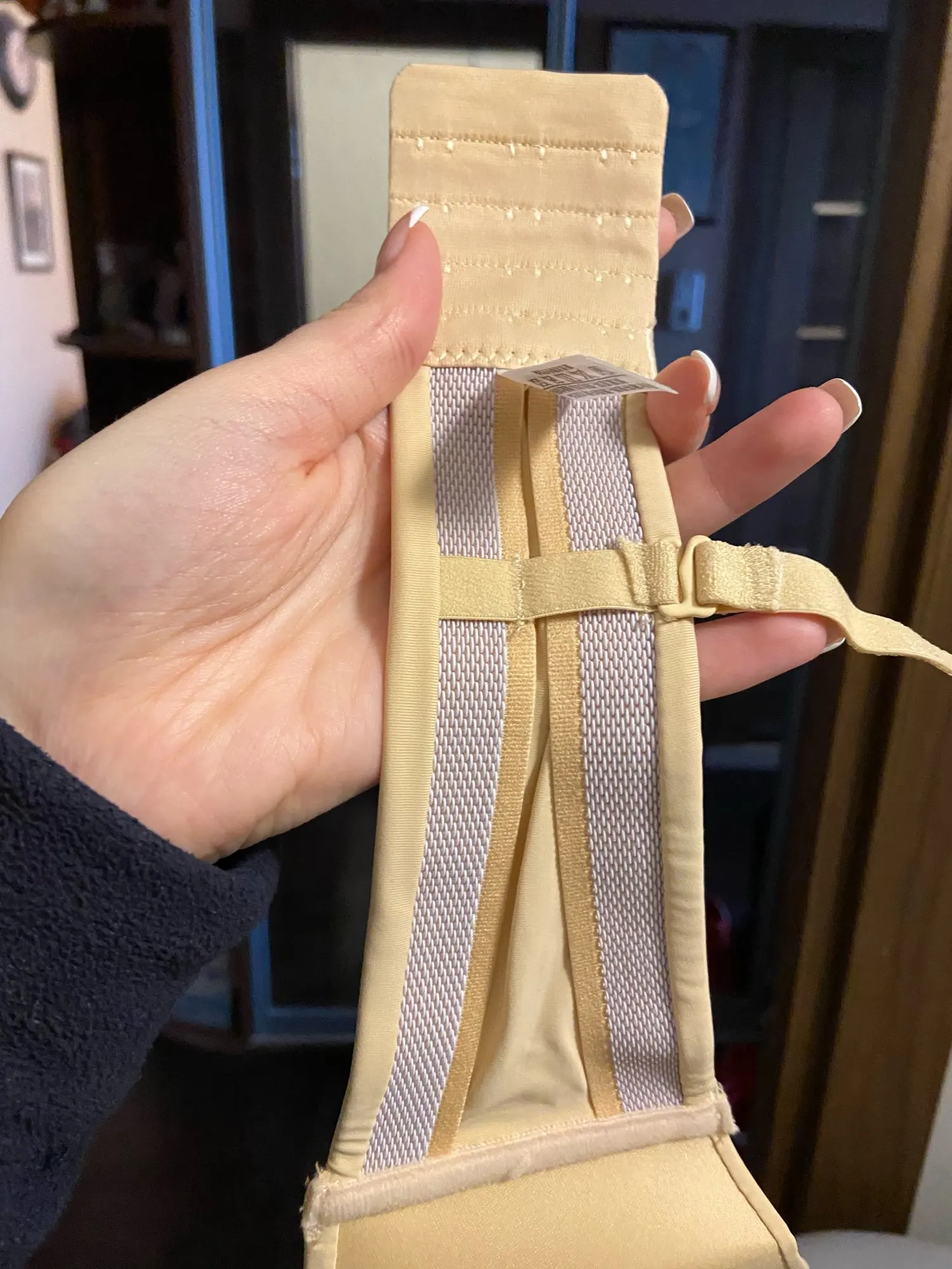 Блин, классный лиф, сел плотненько, комфортно на параметры 72-82. Пуш-апа нет. Внутри силиконовые ленты, чтобы не сползал при носке без лямок. На красивой груди вообще бы смотрелся бесподобно, но и на моем нуле в целом сносно. Качество хорошее, без косяков. Положили удлинитель для крючков и подарок.