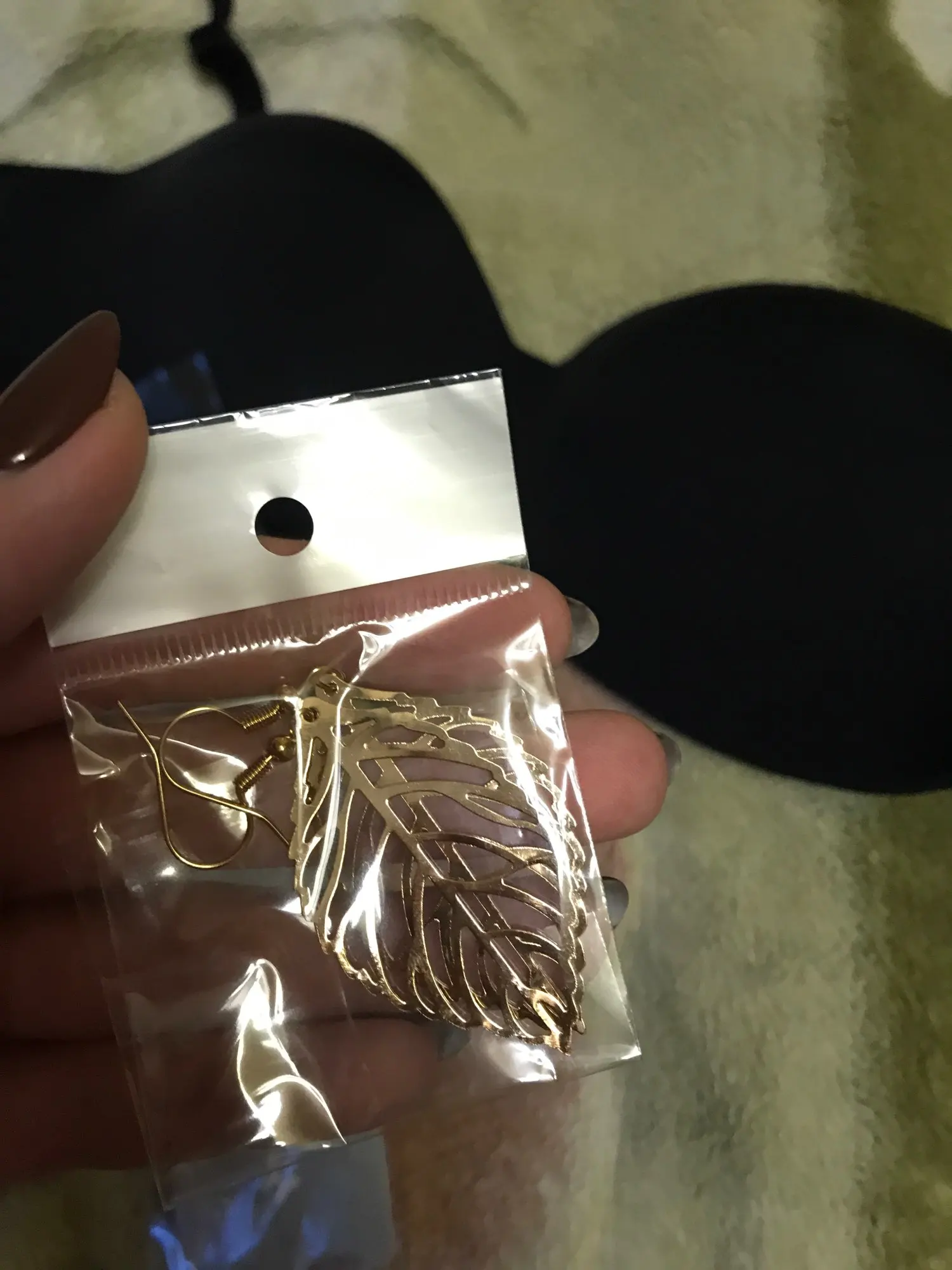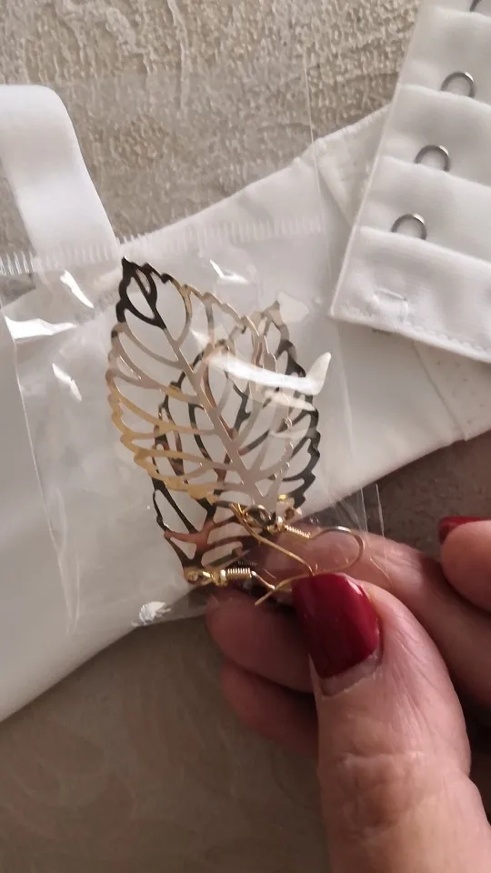 Доставка около 2х недель в ЗИП пакете. На обхват груди 82, под грудью 72-73 взяла 75А, думала лучше так, чем добавлять "удлинитель" застёжки. Но лучше бы взяла 70А, потому что 75А без бретелек норовит упасть с груди даже на последних крючках. Лифчик комфортный, приятный, гладкий, держит форму, после стирки ничего не случилось. Приятный бежевый цвет. Продавец положил дополнительный этот "удлинитель" для застёгивается, и сережки виде листьев.