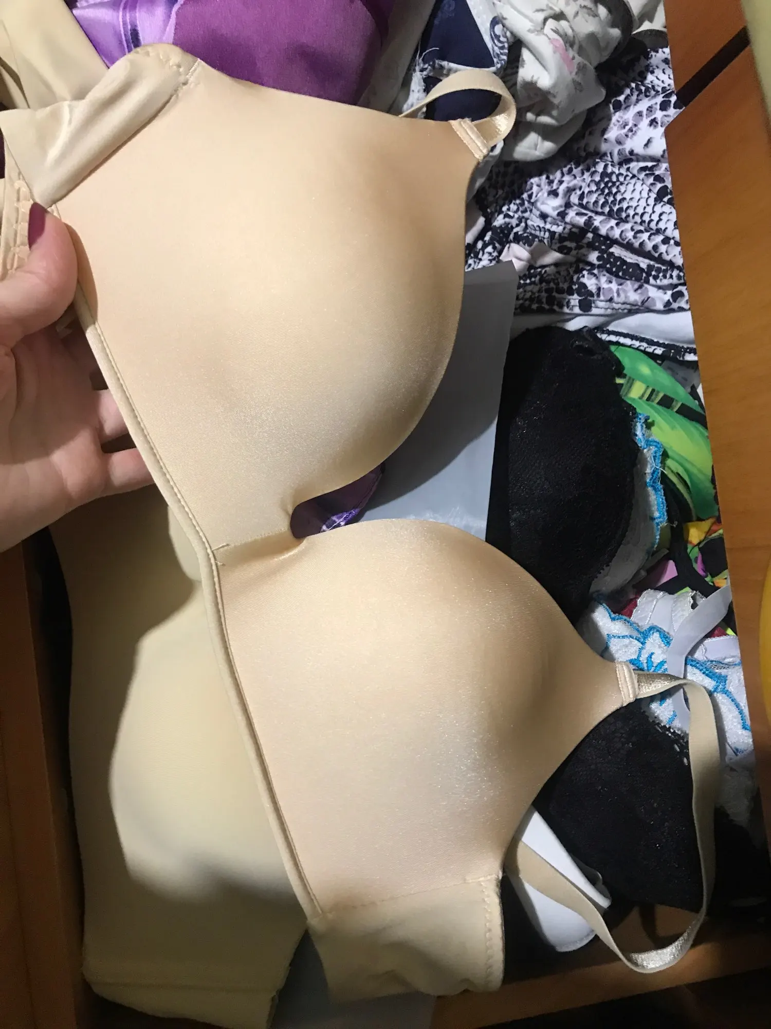 Бюстгальтер просто идеален! Приятный материал, в лямках есть силиконовые(кажется) вставки,чтобы в случае, когда его носишь без верхних лямок, никуда ничего не сползали. с моей светлой кожей под одеждой оттенок бюстгальтера просто идеален. Обязательно закажу ещё парочку. Сначала даже показался слишком плотным и тяжёлым,но это, девочки, качество шик