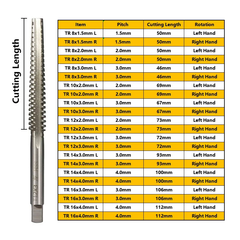 Трапециевидный Метчик из быстрорежущей стали, 1 шт., TR8-TR16 г., для левойправой руки