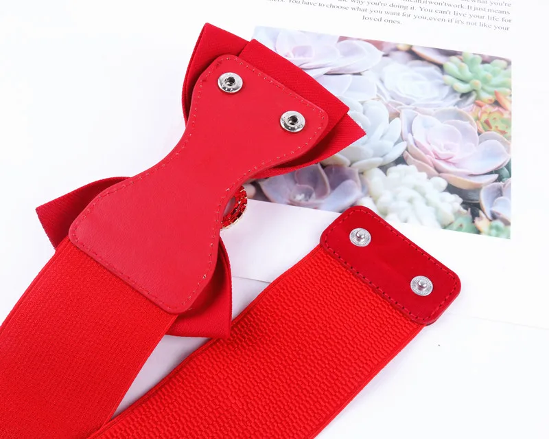 Ремень Эластичный женский с бантом, модный широкий пояс в Корейском стиле, с уплотнением, стразы, красный, белый, черный