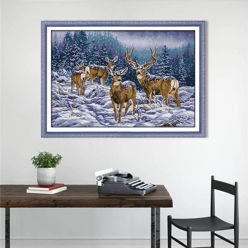 Зимние узоры оленя Счетный крест Aida ткань 11CT 14CT DIY Вышивка комплекты ниток домашний декор вышивка крестиком