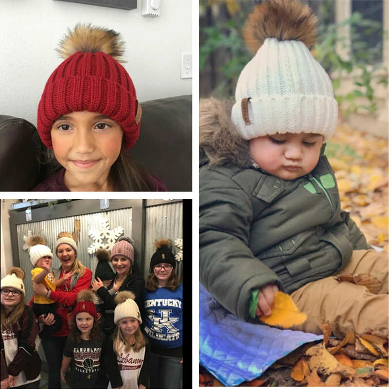 Детская зимняя шапка FURTALK, шапка с помпоном из искусственного меха, Вязаная Шапка-бини для маленьких мальчиков и девочек, зимняя шапка для детей возраста