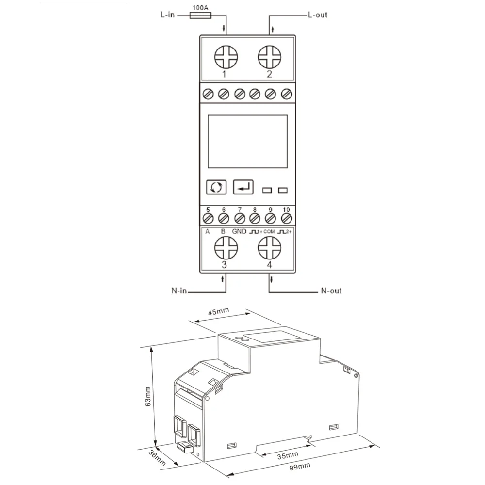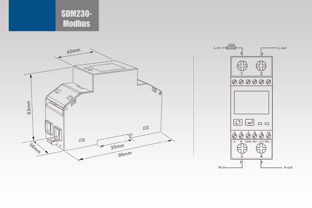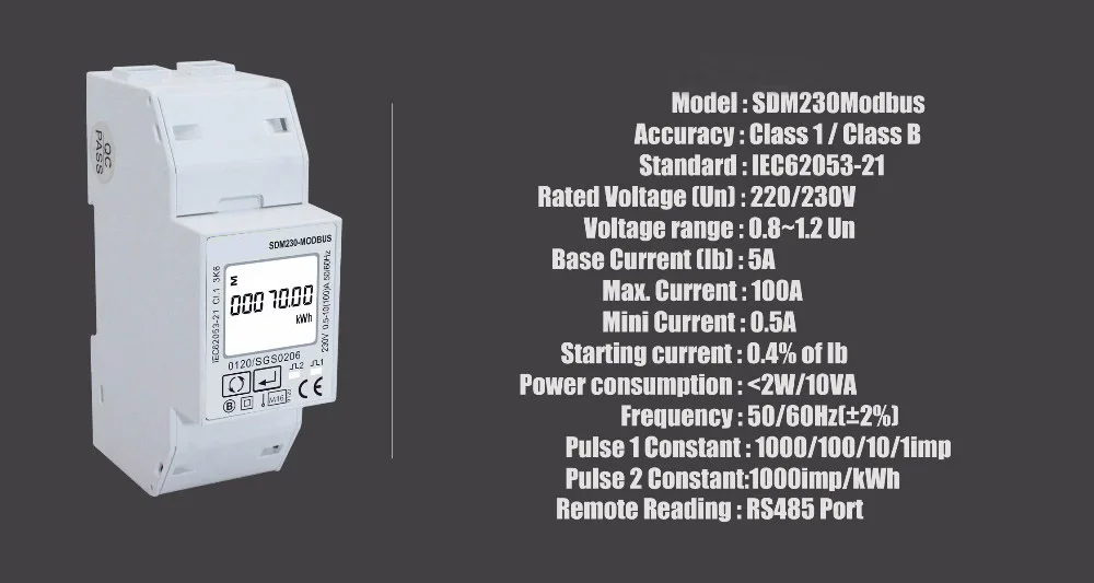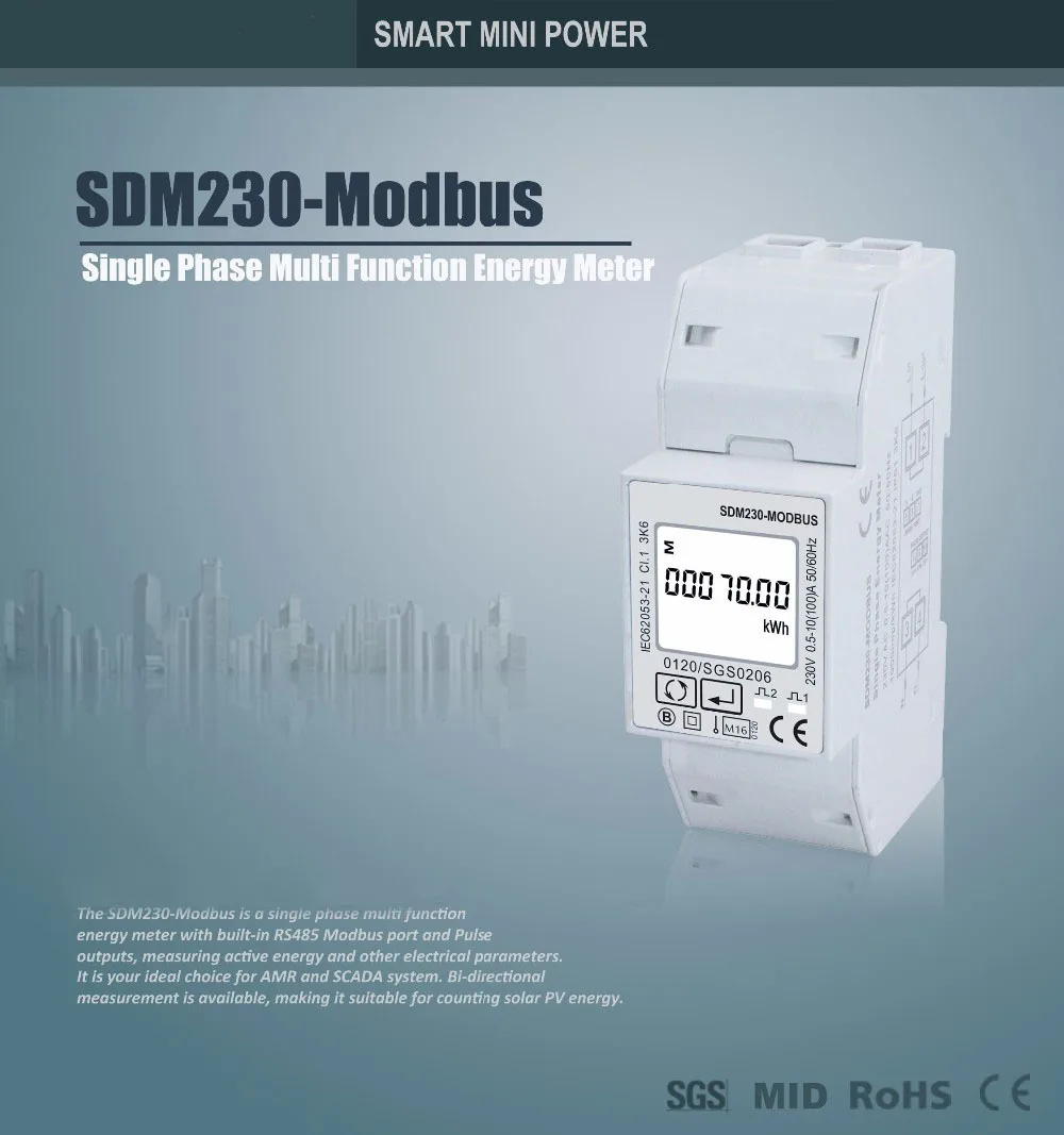 5(100)A, однофазный 230 В, расстояние, измеритель электроэнергии в кВтч, многофункциональный измеритель энергии RS485 RTU, модель строки