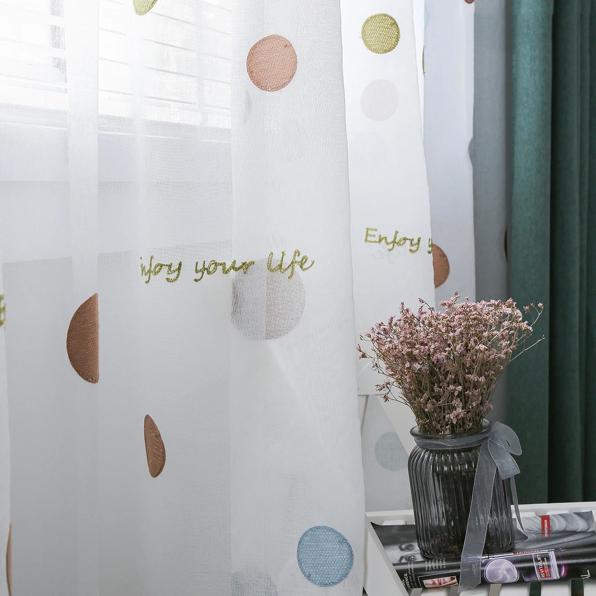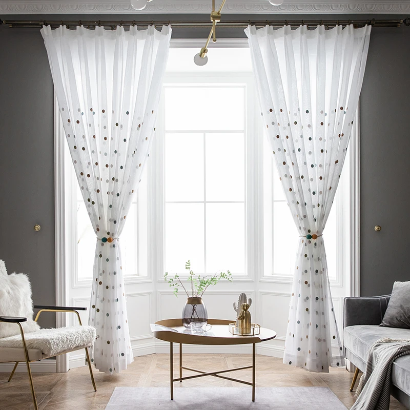Круглая вышитая прозрачная штора для гостиной, романтические вуали, занавески для кухонного окна S010 C