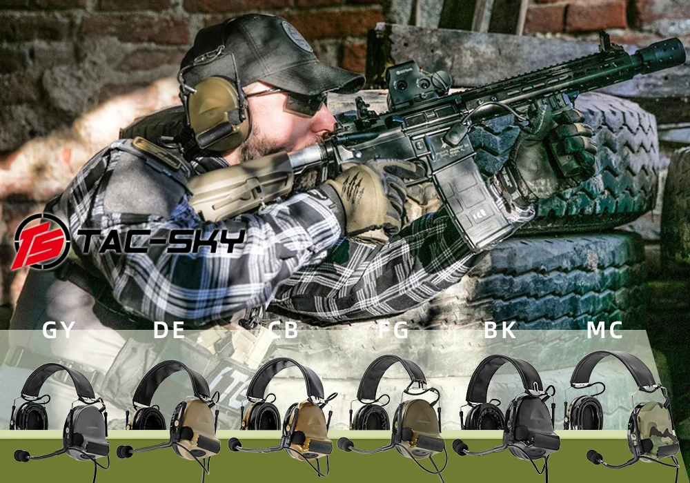 TAC-SKY тактическая гарнитура comtac ii цвета гарнитуры делятся на: серый, песочный, коричневый, армейский зеленый, черный, Мультикам