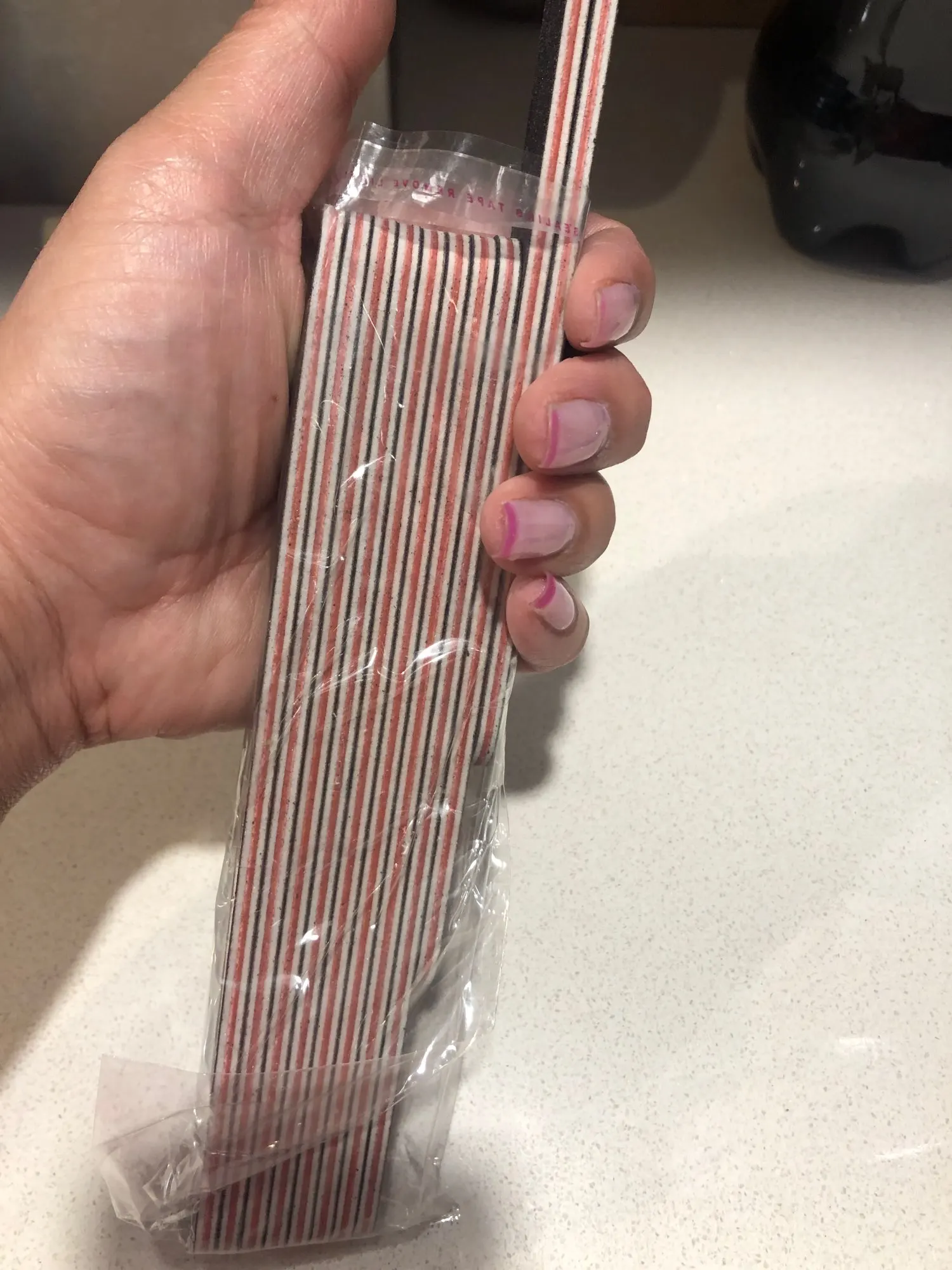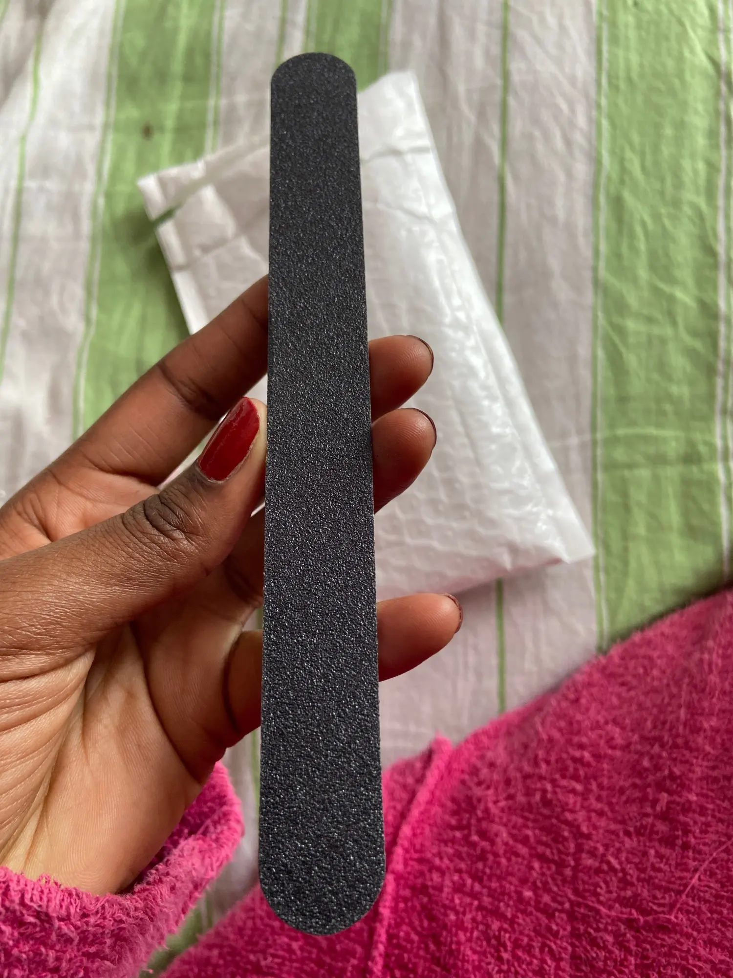 Доставка примерно через три недели. Файлы для ногтей хорошего качества. Они имеют значительную толщину, поэтому они хорошо выдерживают использование. Наждачная бумага, которая имеет тамб, хорошо выдерживает использование. По цене это стоит покупать, и иметь файлы для долгой сезоны
