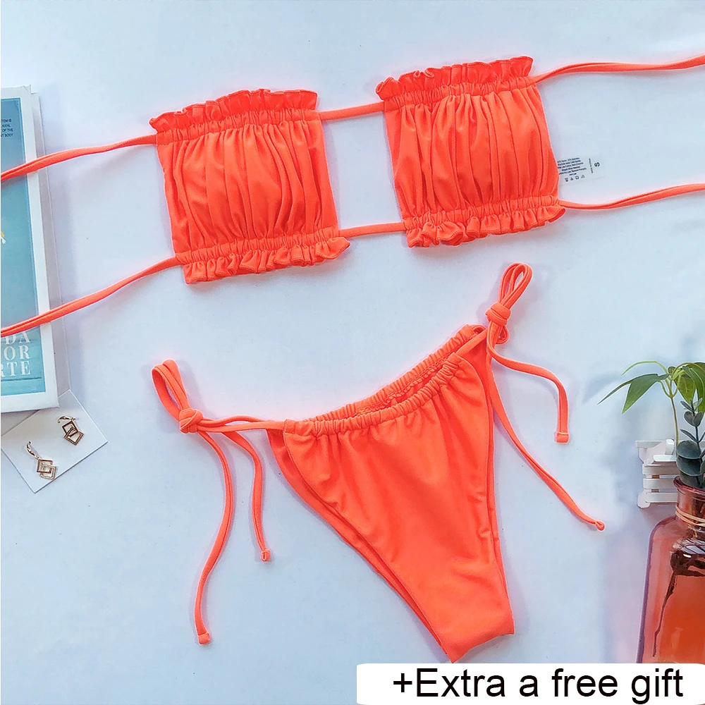 Соблазнительное бикини 2021, плиссированный купальник-бандо, женски...