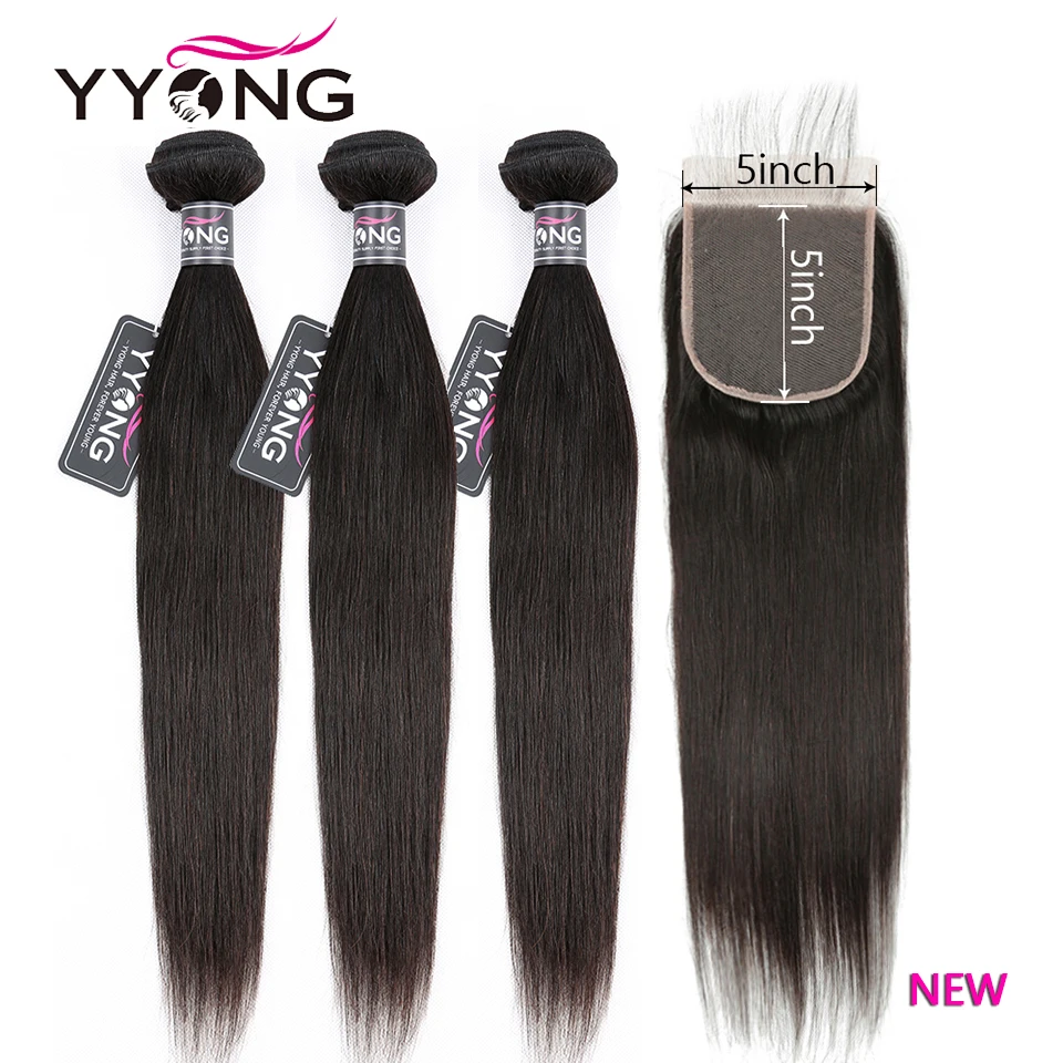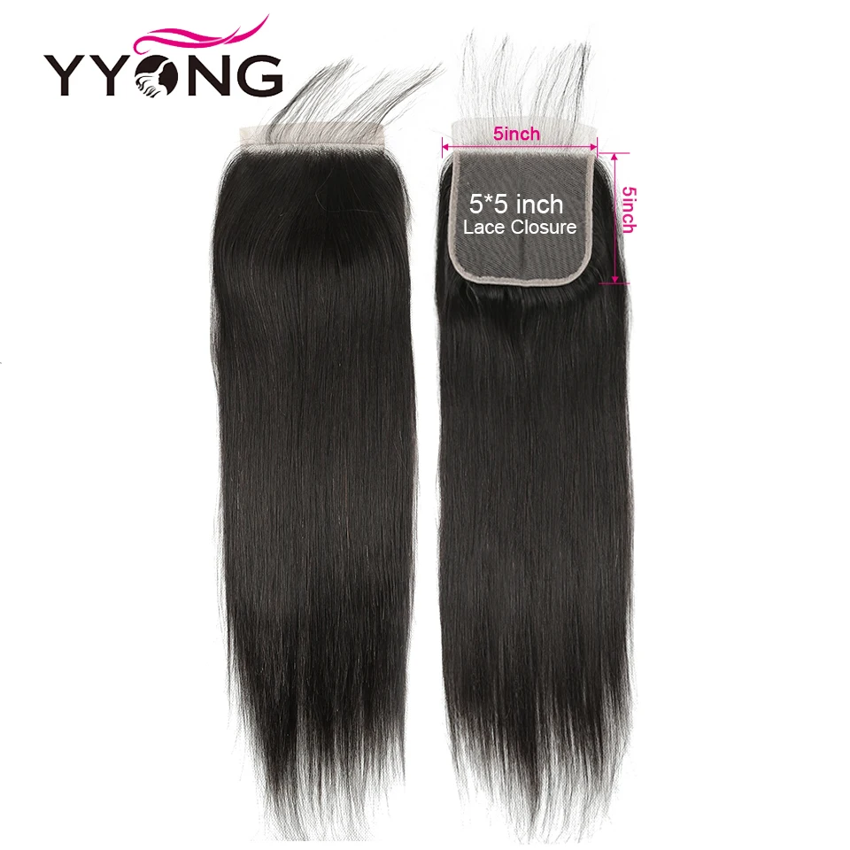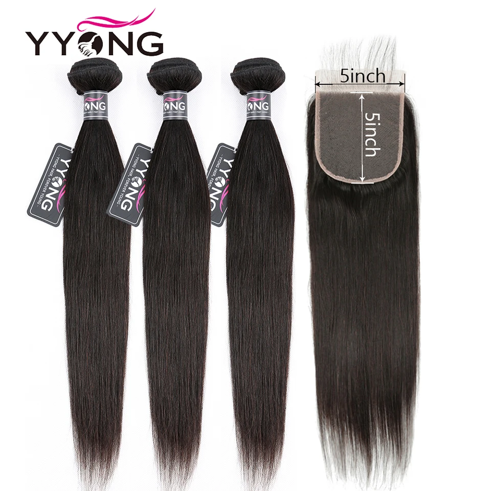Волосы Yyong 5x5 с прядями, 14-30 дюймов, перуанские прямые пряди с закрытием, человеческие волосы Remy, кружевные пряди