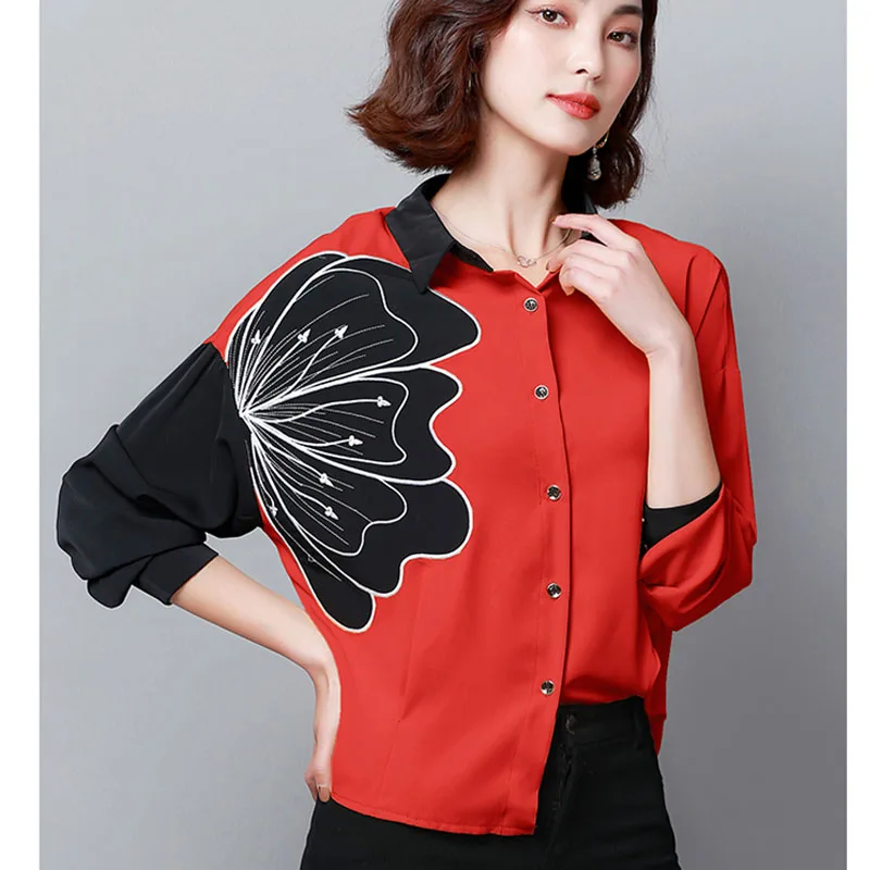 Blusas Mujer De Moda 2020 женские рубашки с длинным рукавом и вышивкой цветочные повседневные женские блузки с отложным воротником размера плюс 6010 50