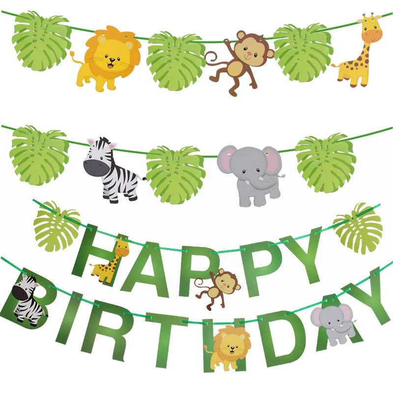 Гирлянда из бумаги в виде животных в джунглях, украшения для вечеринки в честь первого дня рождения ребенка, сафари, вечеринка зоопарк