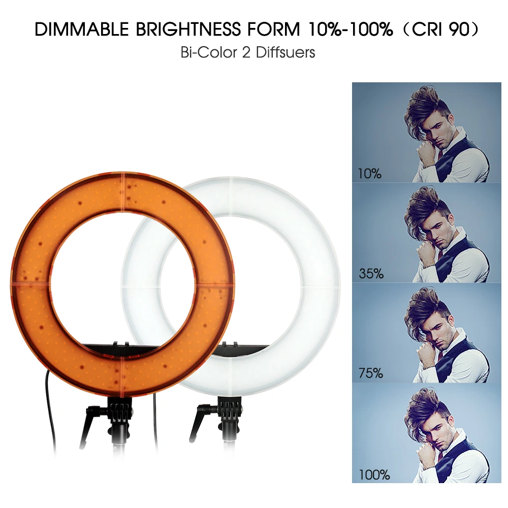 Светодиодный кольцевой светильник с регулируемой яркостью и широким диапазоном затемнения от 1%-100%.